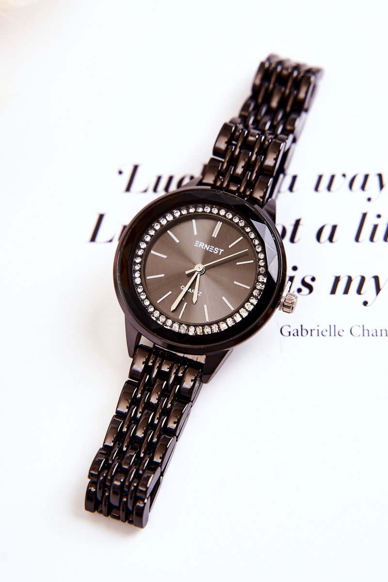 Watch On Bracelet With Cubic Zirconia ERNEST Black