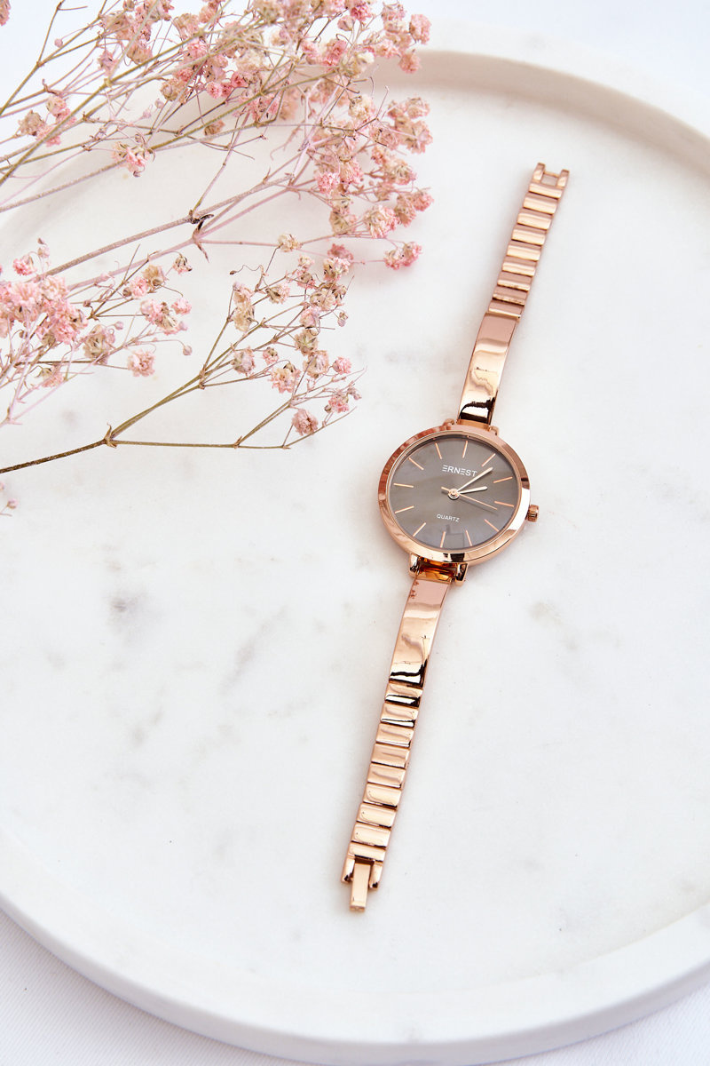 Watch With Black Dial On Bracelet ERNEST Rose Gold