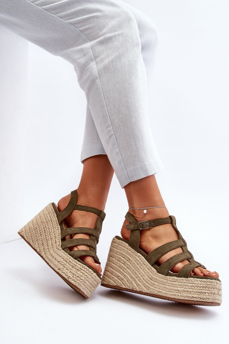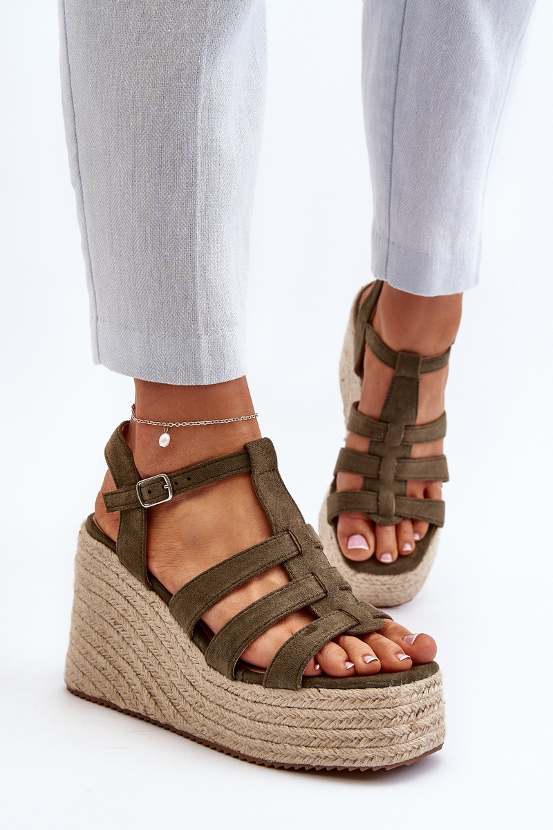 Platform sandals are an excellent solution for those looking for footwear that combines comfort and elegance, especially during long summer walks. The wedge and platform with jute braid provide additional support for the feet, making walking less tiring. Made of eco suede. Fastened with an adjustable buckle strap. You definitely need to have them! When choosing a size, please refer to the size chart.