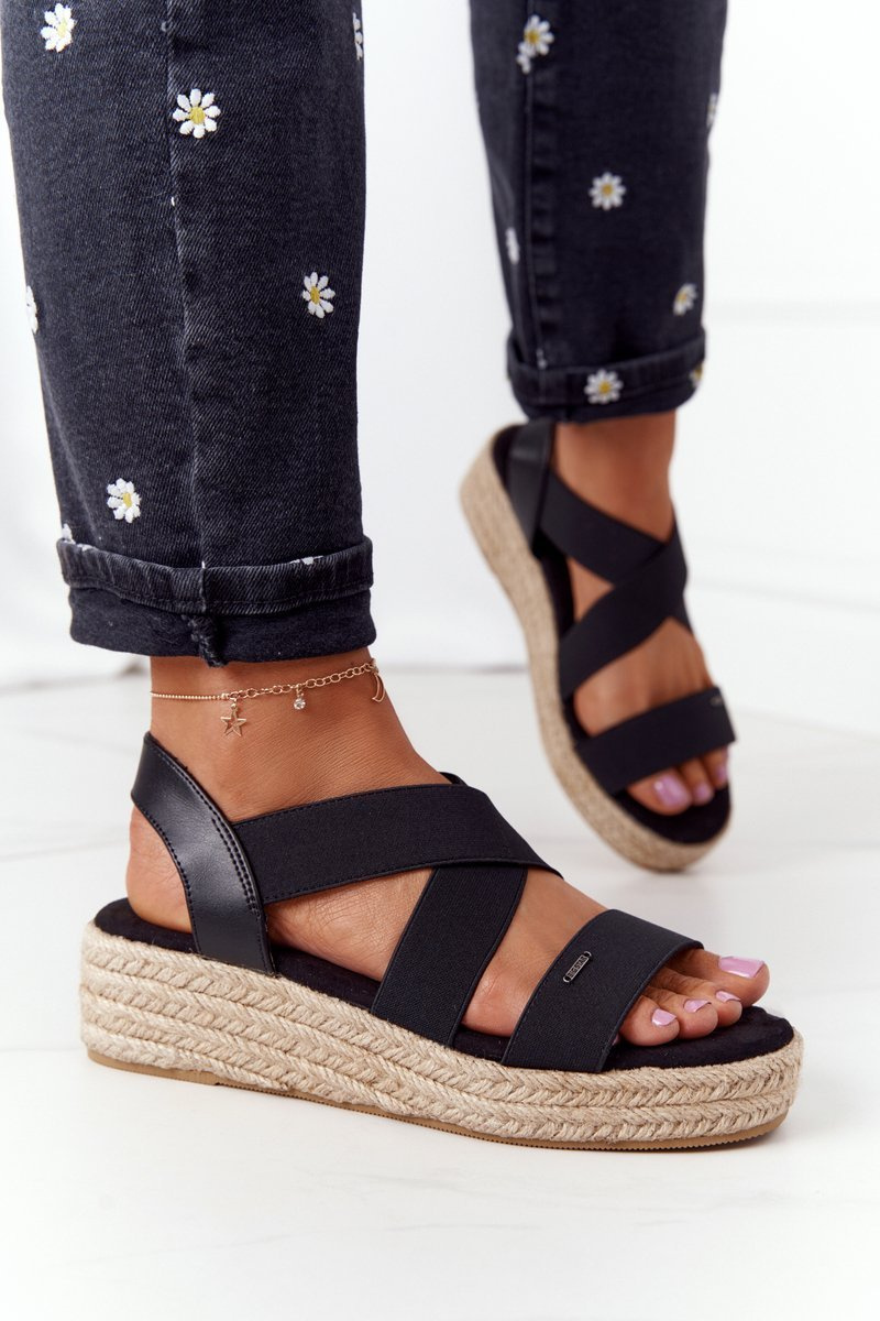 Wedge Sandals With Drawstring Big Star HH274411 Black