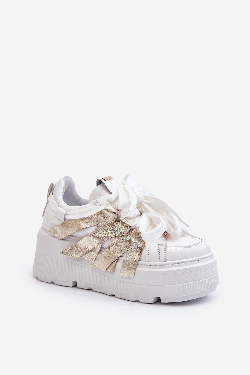 White-Gold Chunky Platform Sneakers Zazoo 2F-7033