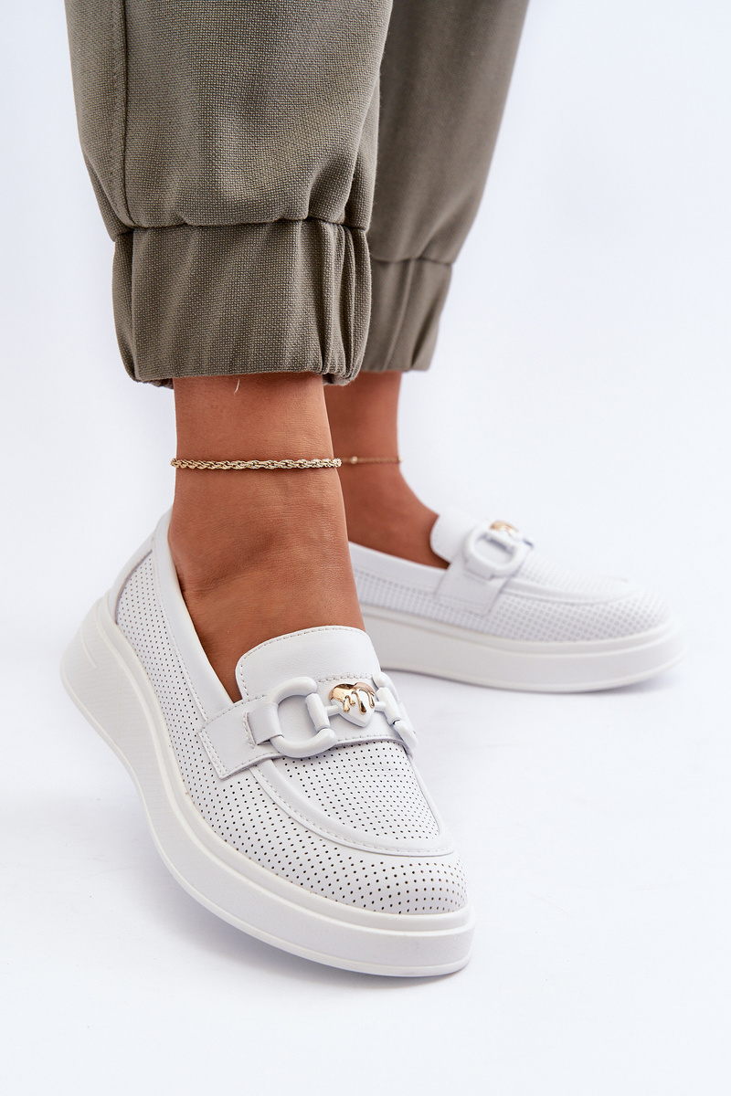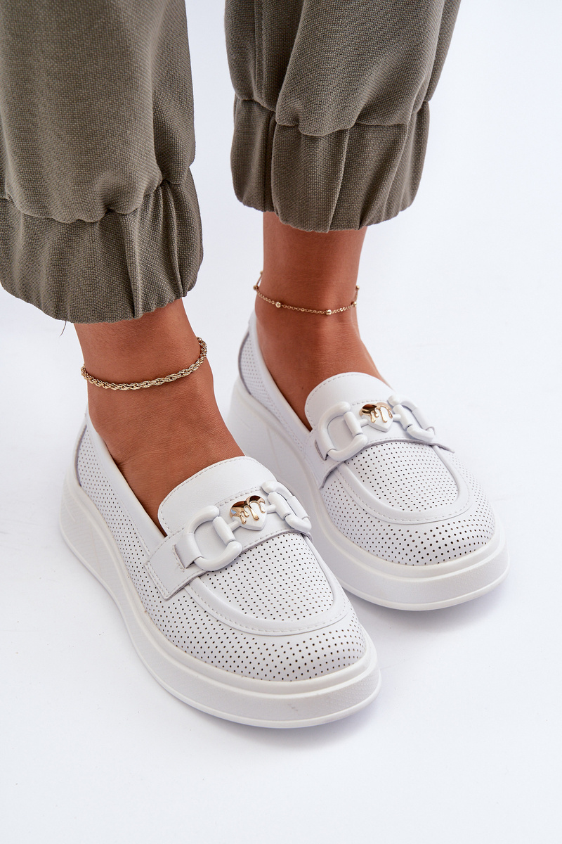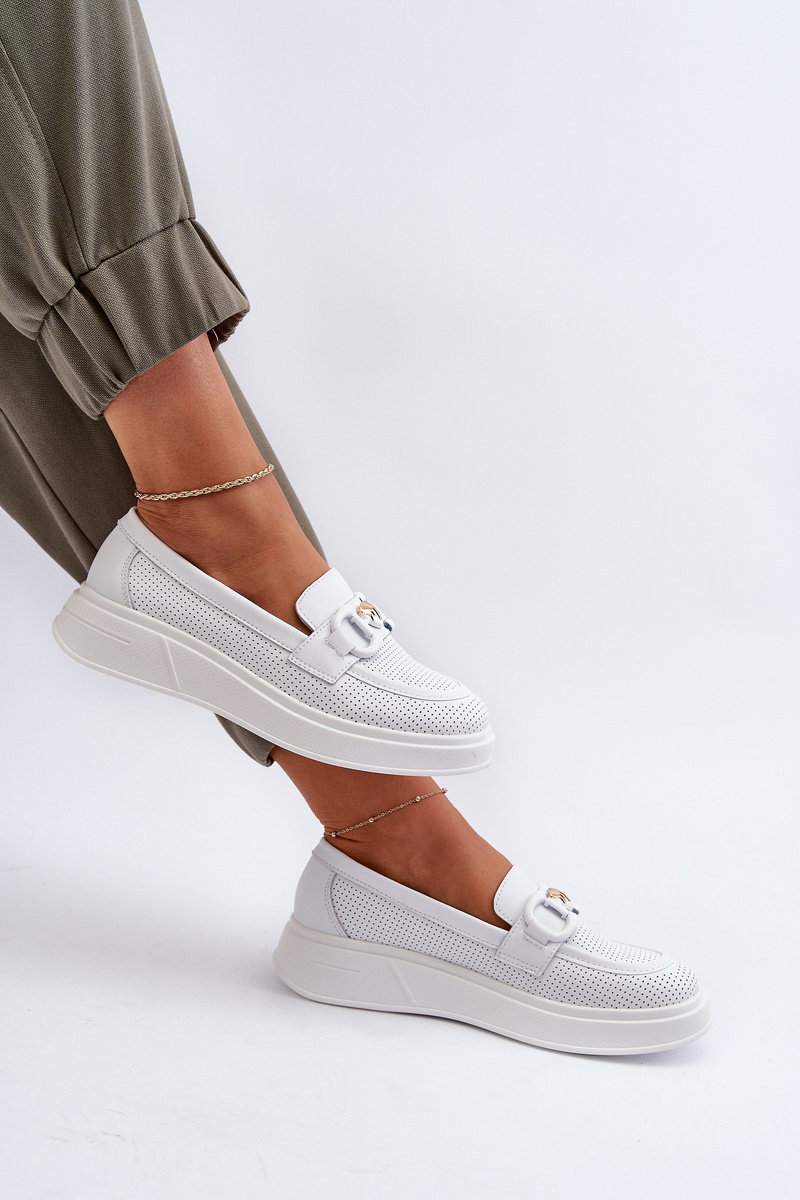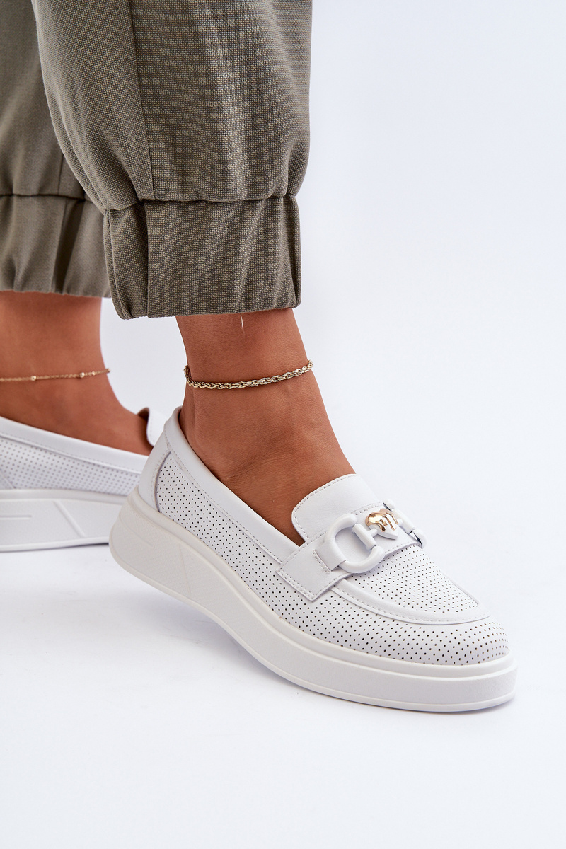 White Women's Leather Moccasins with Platform S.Barski LR720