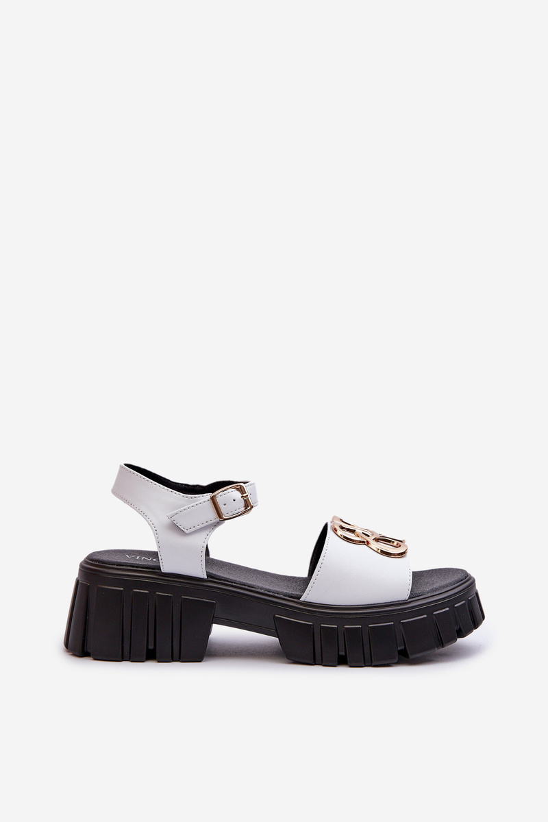 White Women's Leather Sandals with Gold Decoration Vinceza 7910