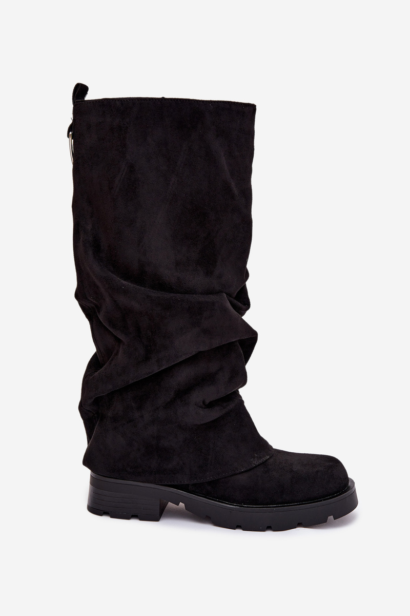 Women's boots with turned-up shafts are a definite hit among winter trends. Made from eco leather. Set on a platform with a chunky heel. Lined with a shoe blanket, they provide comfort and warmth on colder days. Easy to put on thanks to the zipper, with an additional silver zipper and a buckle strap at the top of the shaft adding a fashionable, striking character. Perfect for both everyday and more elegant outfits. Please refer to the size chart when choosing your size. When choosing a size, please refer to the size chart.