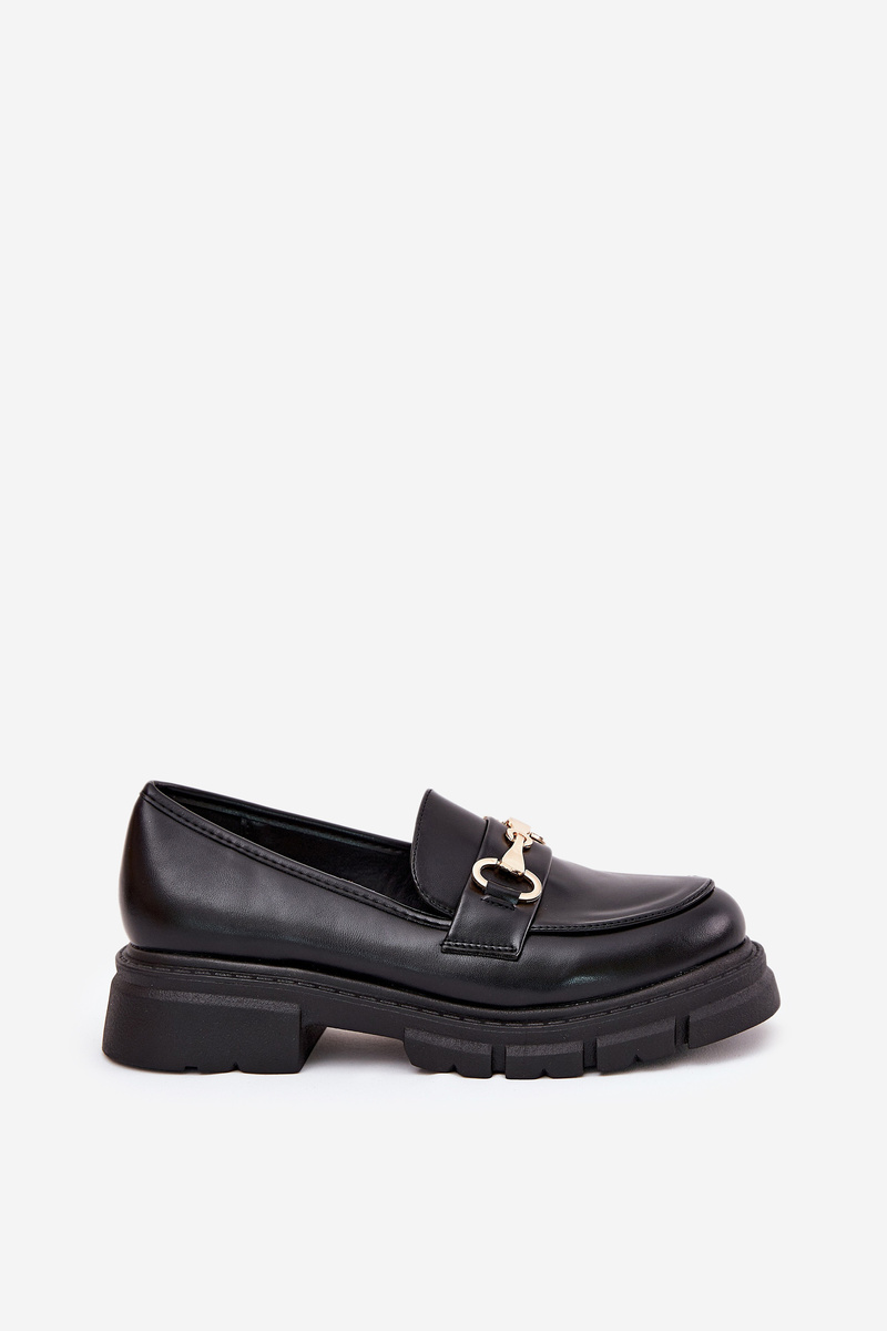 Elegant women's moccasins made of eco-friendly leather. Rounded toes guarantee all-day comfort, and the decorative gold element at the front of the shoe gives them a unique style. Set on a platform and flat heel, these moccasins provide stability. Perfect for everyday outfits. When choosing a size, please refer to the size chart.