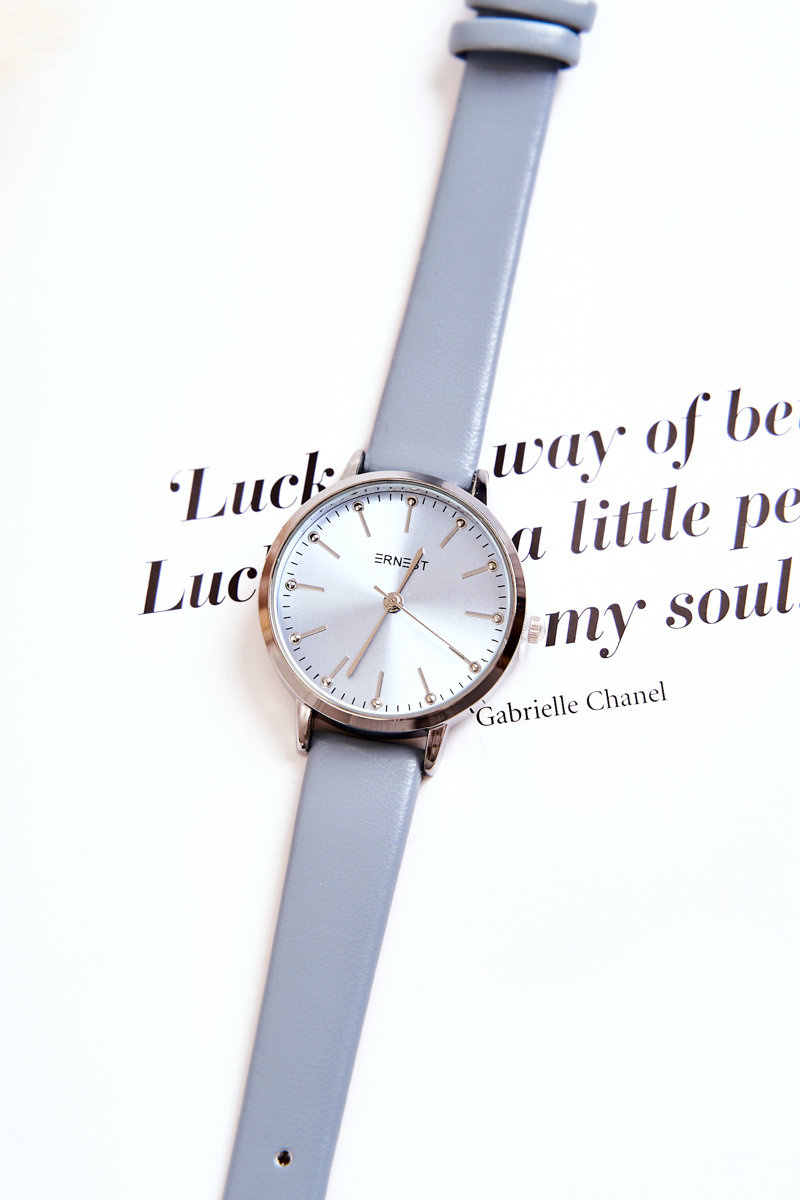 The Ernest watch is a model for every woman who appreciates elegant and fashionable accessories. The watch has an adjustable strap made of ecological leather. Fastened with a buckle. The dial is in the same color as the watch strap. Made of stainless steel. It does not contain nickel.