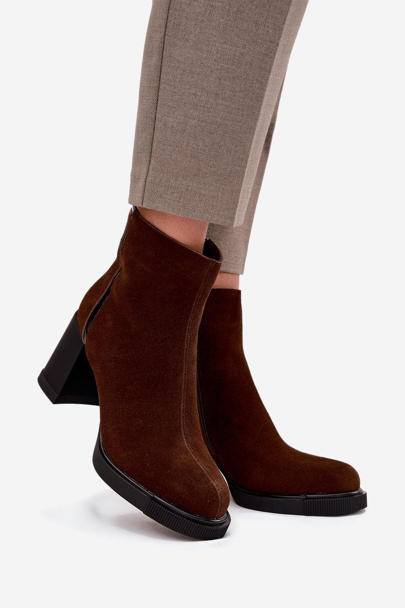 Women's Ankle Boots Made of Natural Suede on Heel Vinceza 91141 Brown