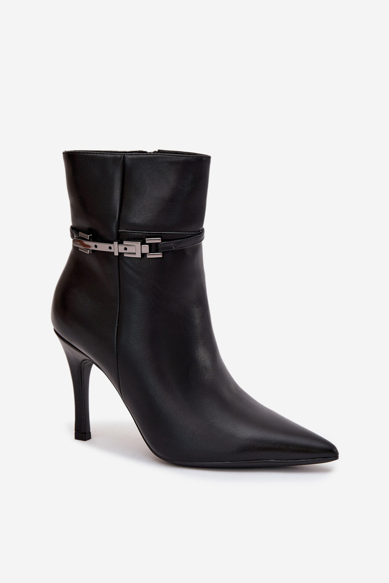 Women's ankle boots on heel with strap and silver element heated black Bellisse