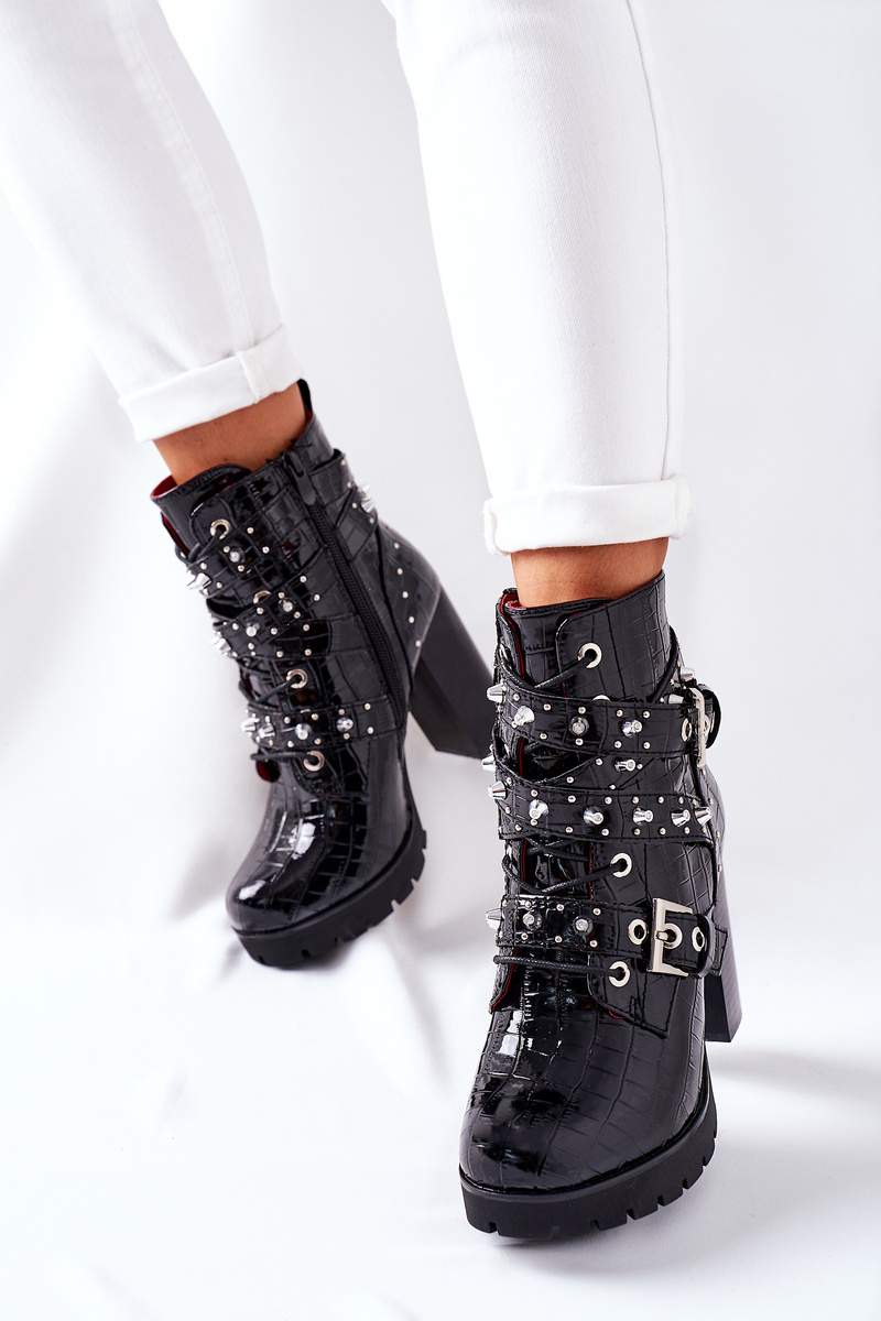 Black patent boots are a hit of this season! The inside of the shoes is lined with a nice-to-touch shoe blanket! A zipper on the side makes putting them on easy! Boots decorated with steel inserts on buckles. When choosing a size, please use the size chart.