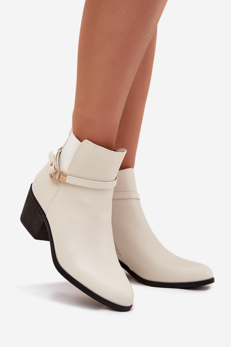 Womens Ankle Boots With Zipper With Strap And Gold Detail Light Beige Zelinae