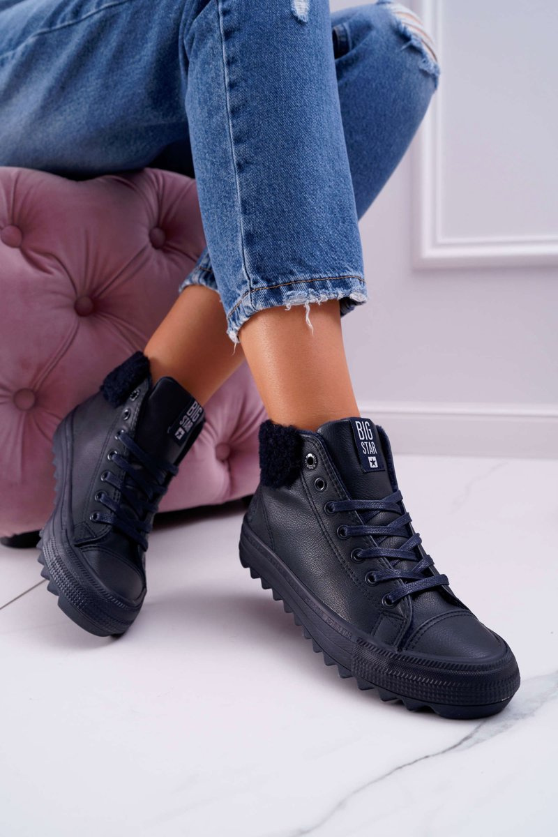 Tall, warm, timeless lace-up BIG STAR sneakers! Comfortable sneakers with a delicate warming in the form of "fur" which will be perfect for colder days. Non-slip, solid sole, is a guarantee of safety. Classic design combined with unprecedented comfort is a perfect recipe for practical and original shoes. When choosing the size, please suggest the size chart available after hovering over or clicking on the size.