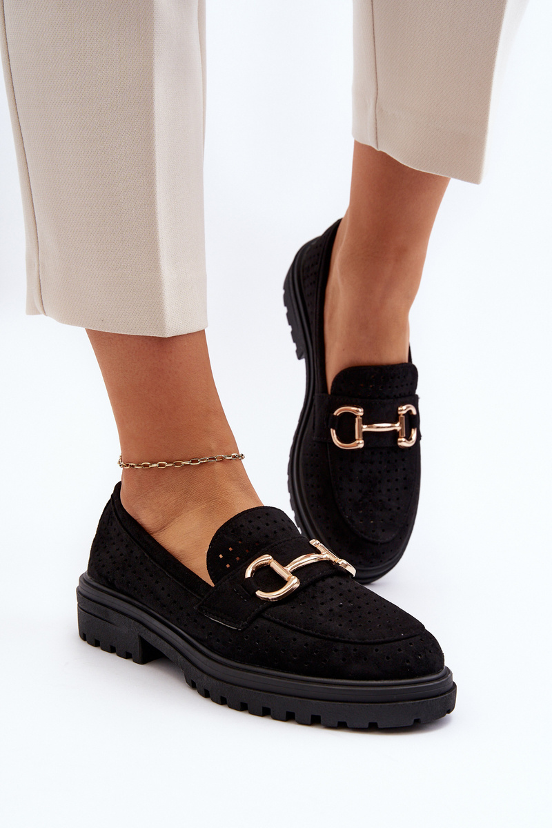 Lace-up women's moccasins made of eco suede look elegant and are an excellent addition to spring-summer stylings. The decoration placed at the front adds charm and elegance. Set on a flat heel and sole made of rubber material. Rounded toes. The eco-leather insole is soft and comfortable. You definitely should have them! When choosing a size, please refer to the size chart.
