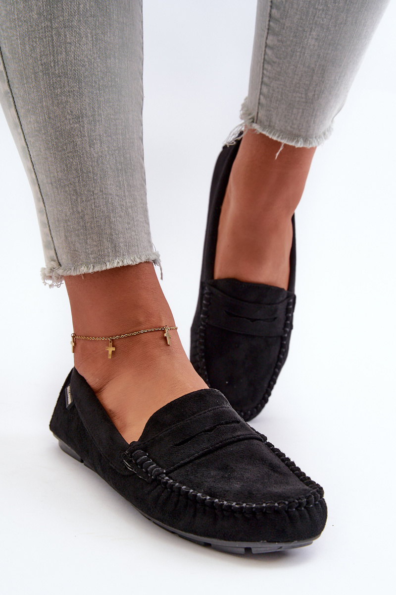 Women's moccasins made of eco suede. Set on a platform. Rounded toes. This model has a soft insole made of genuine leather, which will provide comfort during wear. Small pendants at the front. A classic cut that you can match with many spring-summer stylings! When choosing a size, please refer to the size chart.