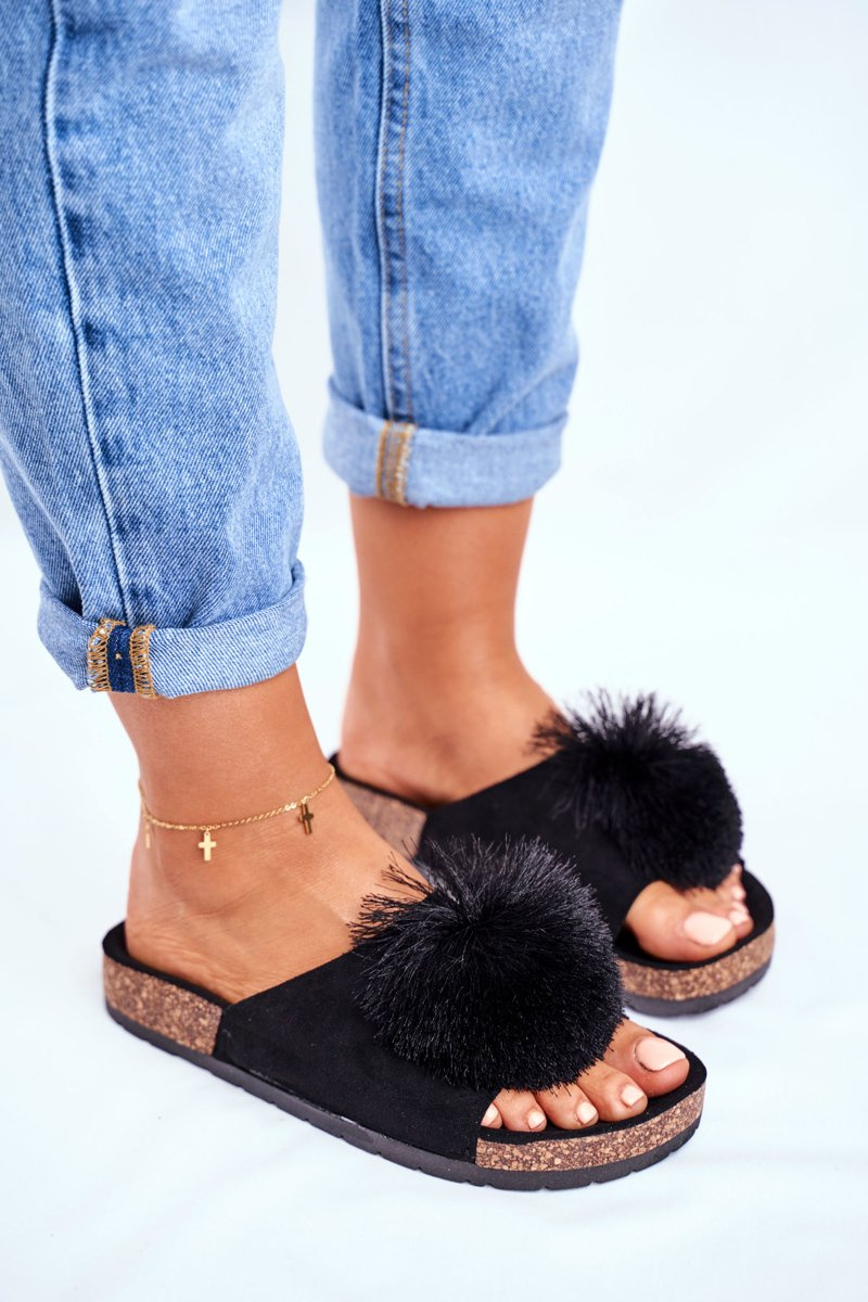 Women's Black Flip-flops with Pompom Galaxo