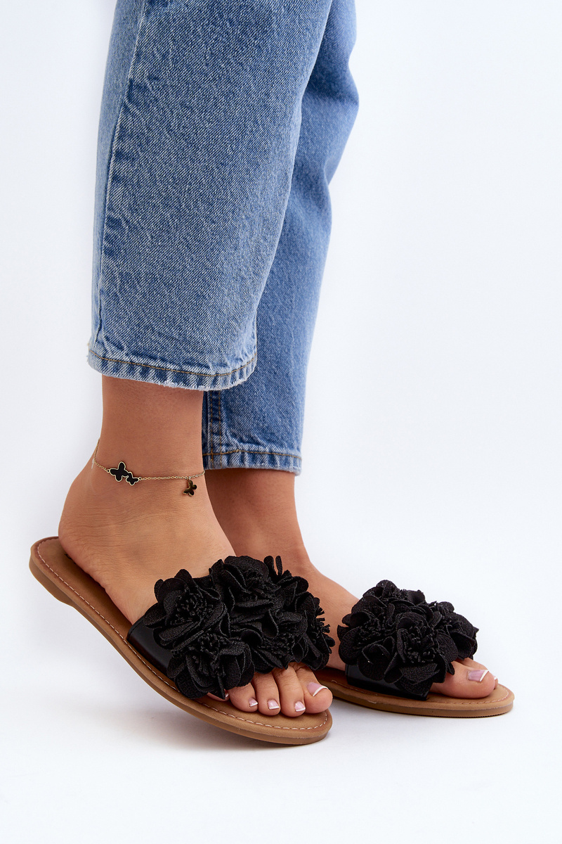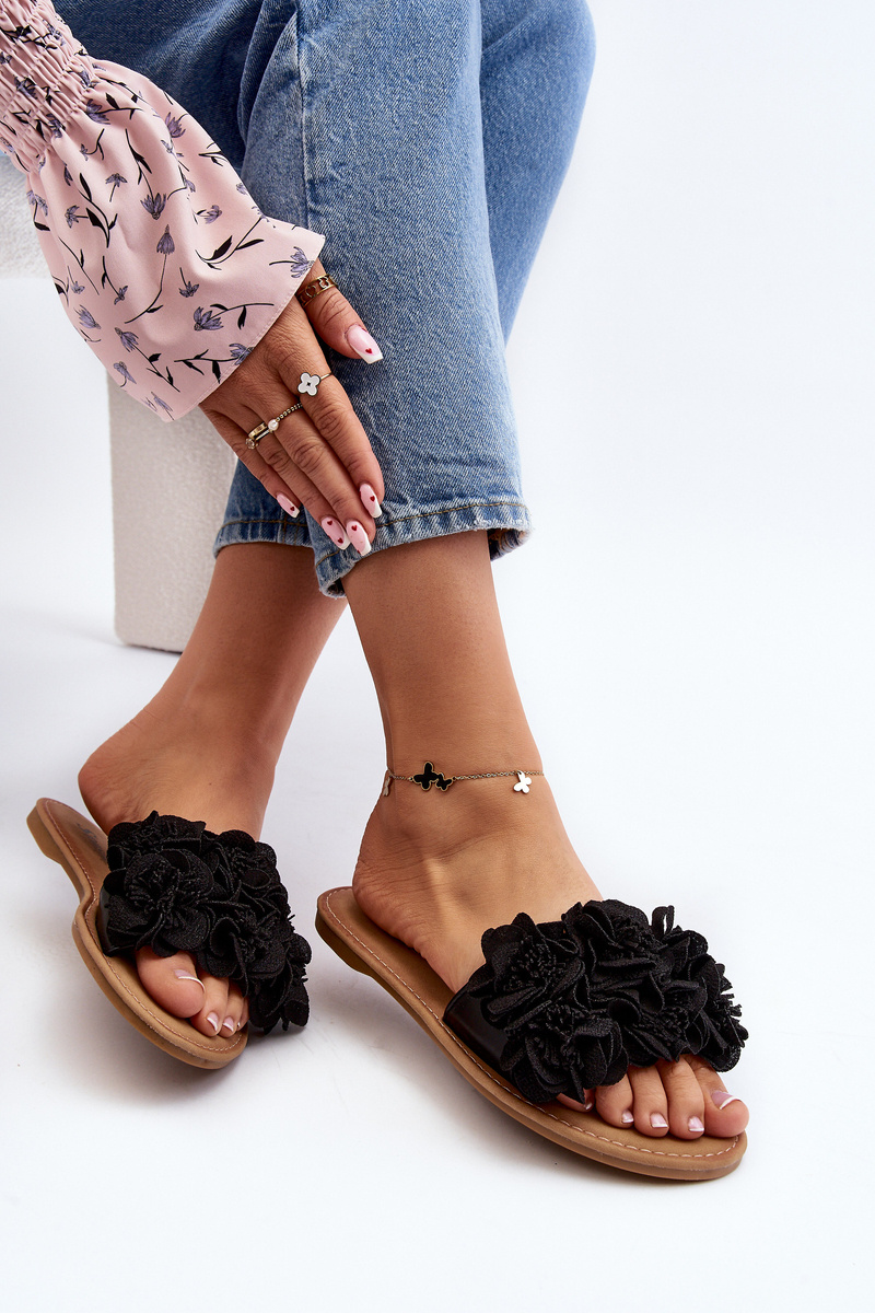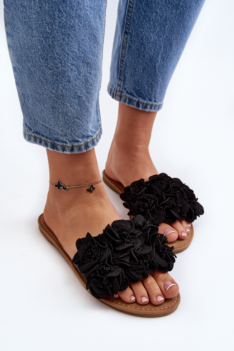 Women's Black Flower Sandals Eelfan