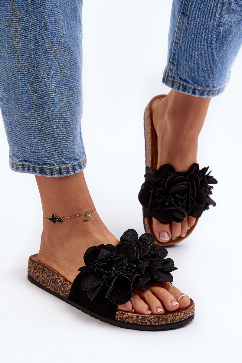 Beautiful women's sandals decorated with flowers. Set on a cork platform. The shoes have a lightly profiled insole, which will guarantee comfort during use. This style is perfect for everyday wear, work or shopping. You definitely should have them in your summer wardrobe! When choosing a size, please refer to the size chart.