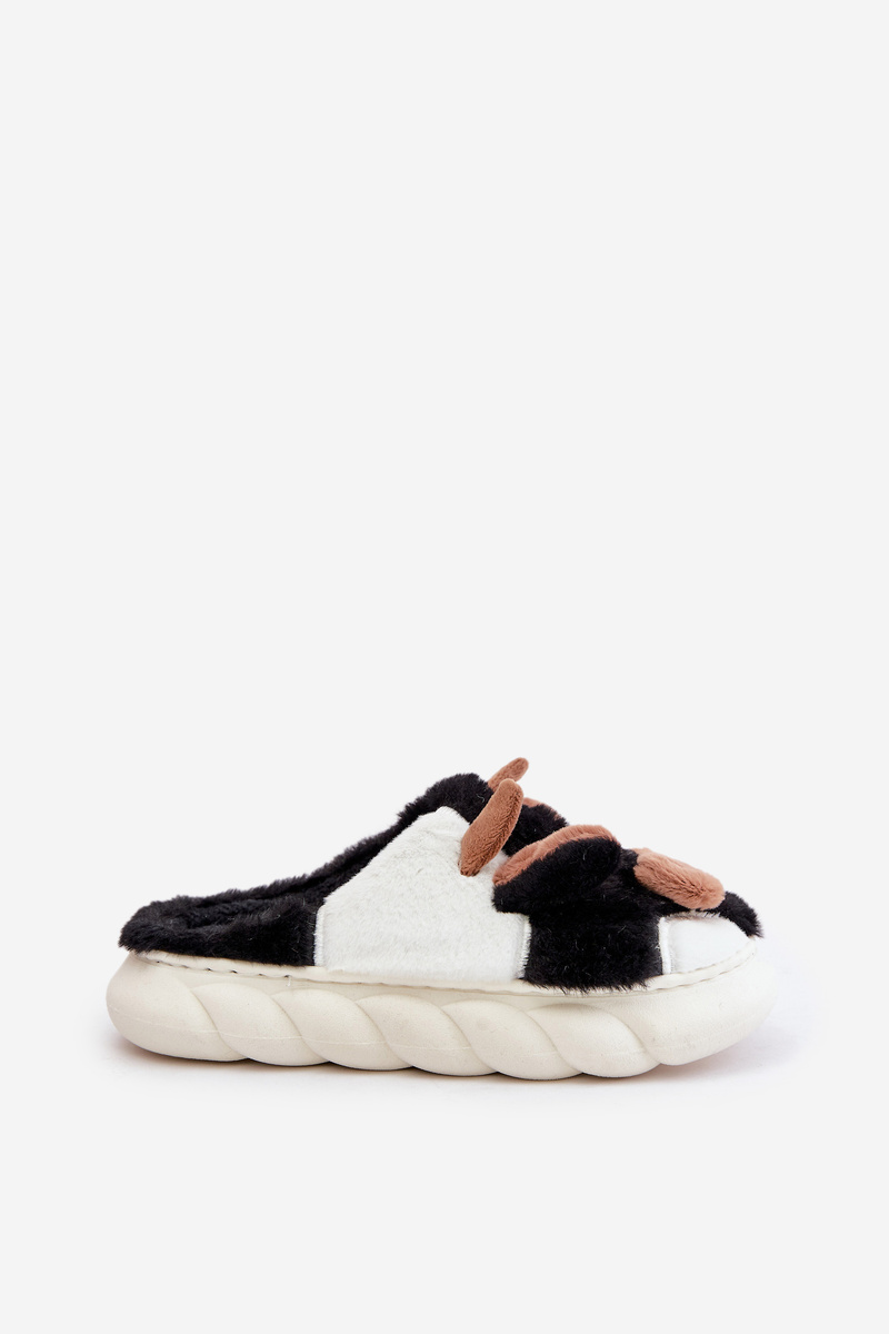 Women's slippers with a soft structure, adorned with a cow motif, represent an excellent combination of comfort and a fun design. Made from soft-touch fur, these slippers are perfect for cold evenings, bringing style and humor to home relaxation. When choosing a size, please refer to the size chart.