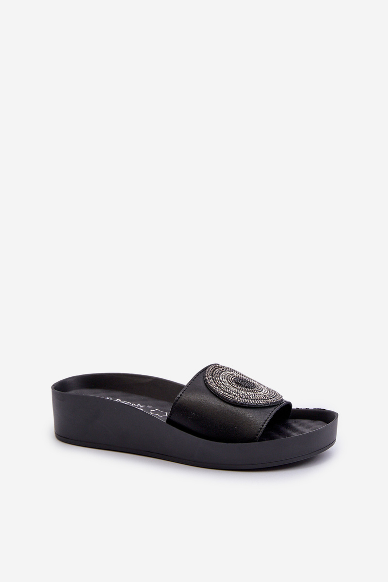 Women's Black Leather Slides with Decoration S.Barski KV27-019