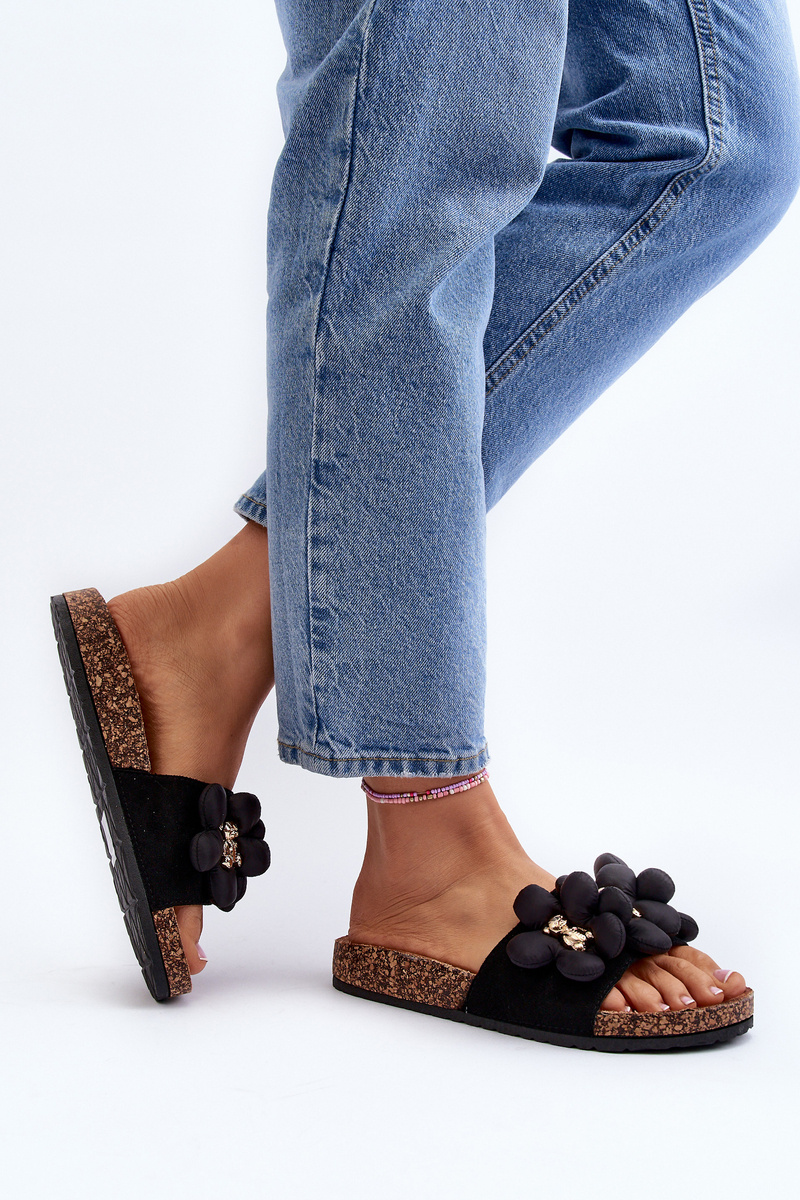 Classic women's flip-flops set on a massive, cork platform. Decorations at the front. The lightly profiled insole is comfortable to use even all day long. Don't wait any longer and buy them today! You definitely should have them! When choosing a size, please refer to the size chart.