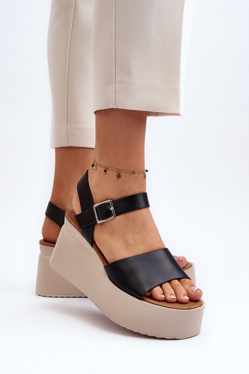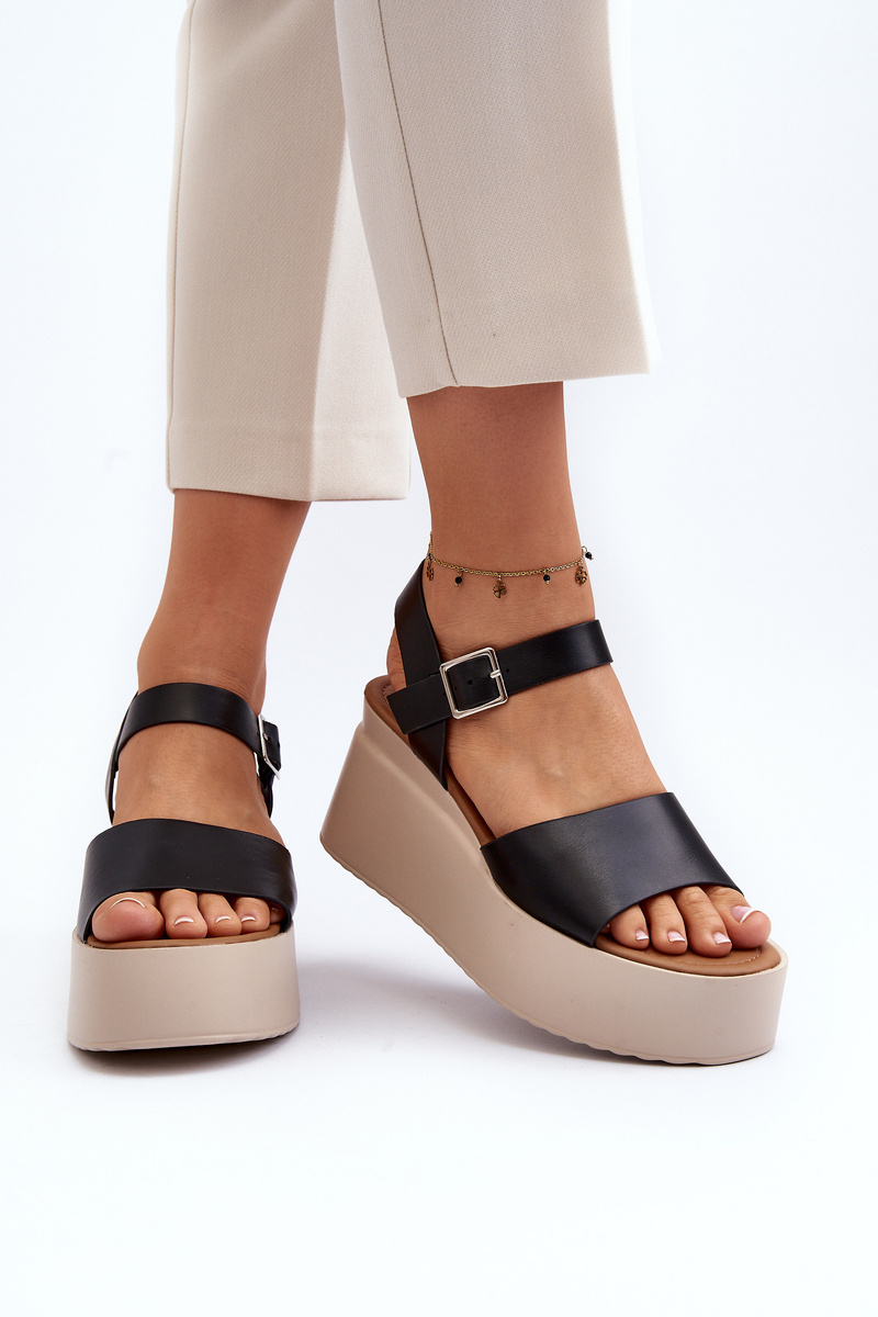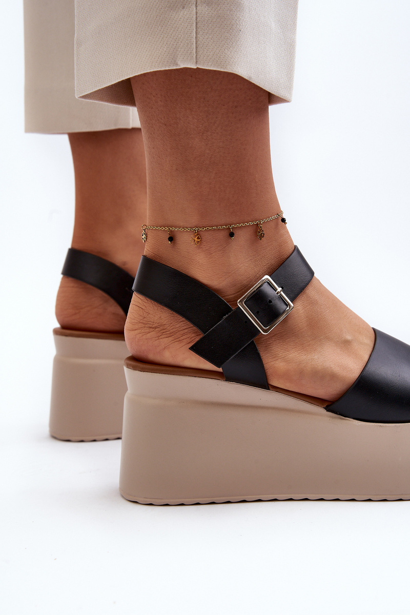 Women's sandals made of eco leather. Set on a wedge and platform, which not only adds a fashionable look to them, but also provides stability when walking. Fastened with an adjustable buckle strap, you can easily adjust them to your foot. When choosing a size, please refer to the size chart.
