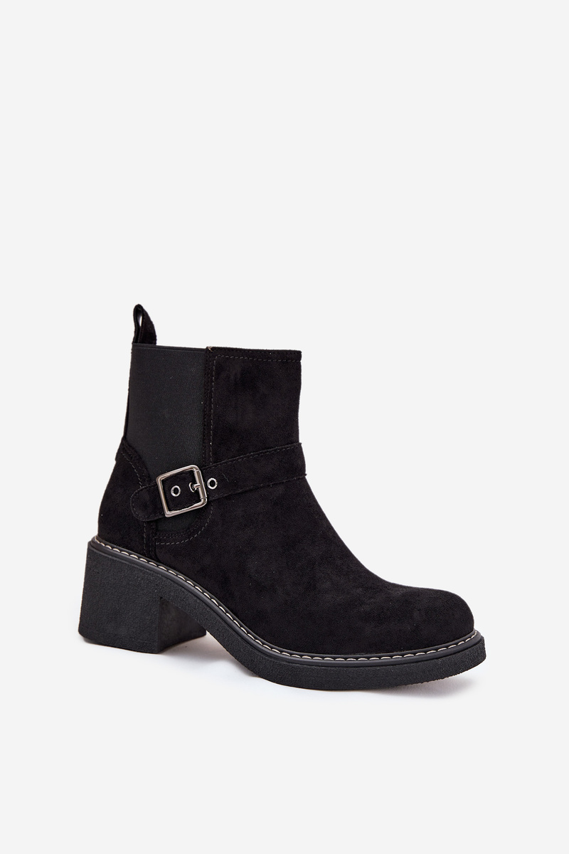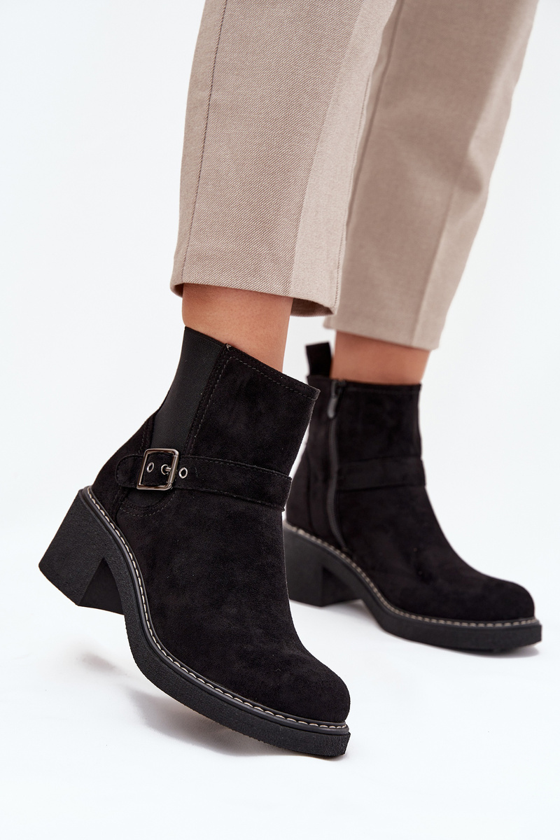 Women's ankle boots made of eco suede are perfect for any occasion! They feature a comfortable block heel that provides stability, and the rounded toes add charm. The strap with a buckle on the shaft is a stylish detail, and the zipper makes them easy to put on. Ideal for everyday styling—combining comfort and classic look! Please refer to the size chart when selecting your size. When choosing a size, please refer to the size chart.