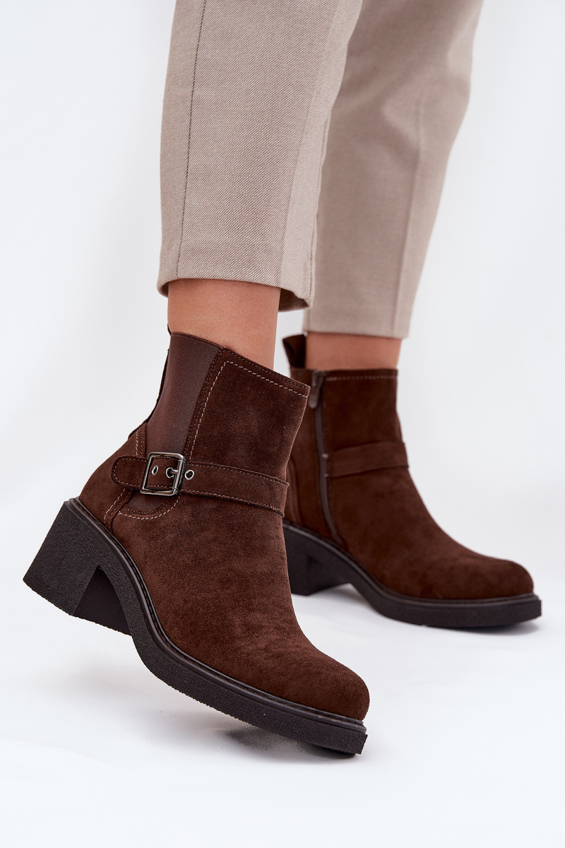 Women's ankle boots made of eco suede are perfect for any occasion! They feature a comfortable block heel that provides stability, and the rounded toes add charm. The strap with a buckle on the shaft is a stylish detail, and the zipper makes them easy to put on. Ideal for everyday styling—combining comfort and classic look! Please refer to the size chart when selecting your size. When choosing a size, please refer to the size chart.