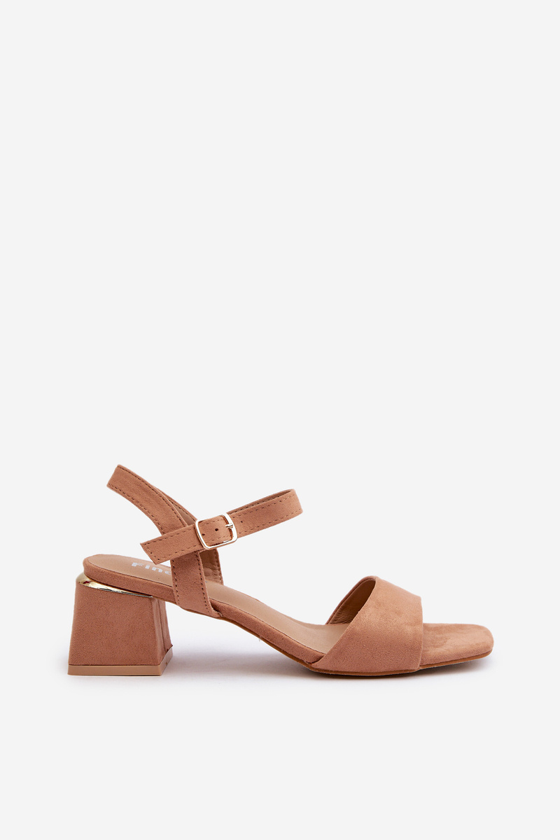 Women's sandals made of soft to the touch eco suede. The block heel provides stability. Fastened with an adjustable strap with a buckle, ensuring a perfect fit to the foot. Perfect for summer dresses! When choosing a size, please refer to the size chart.