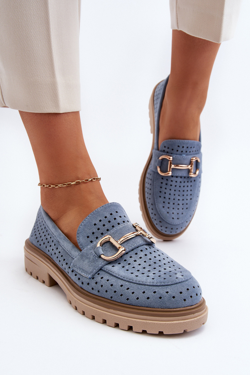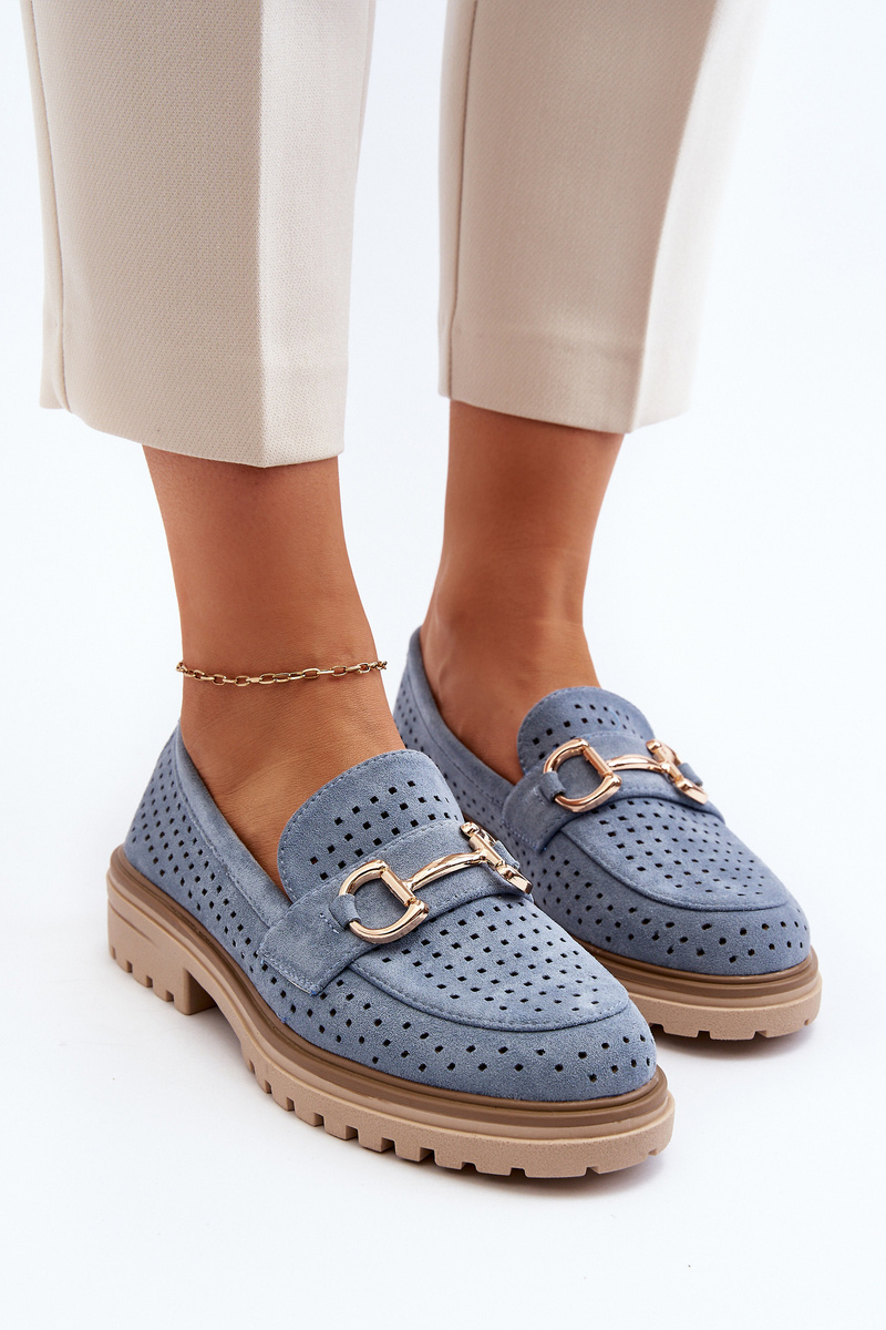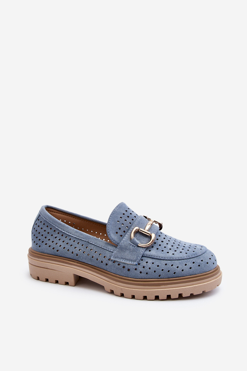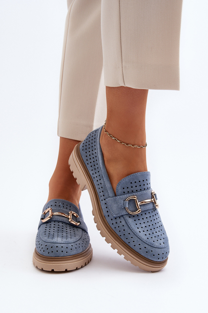 Women's Blue Cutout Moccasins With Embellishment Talesse
