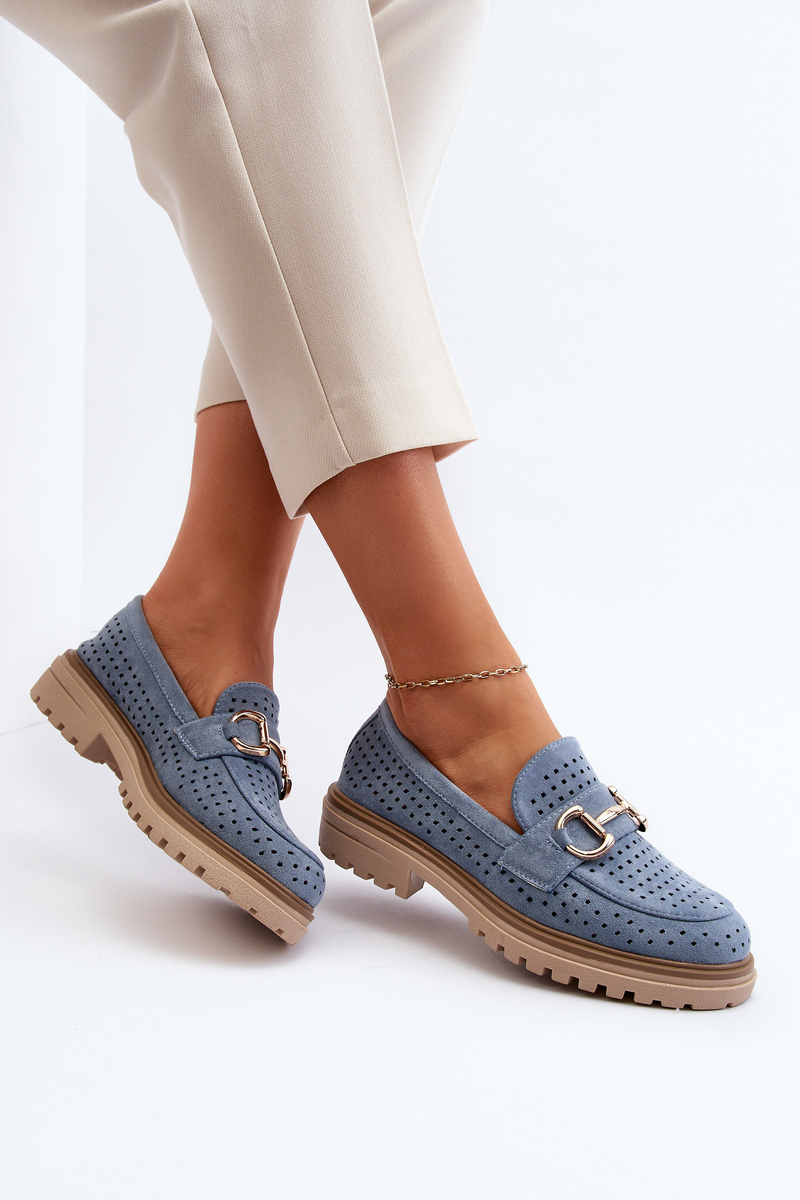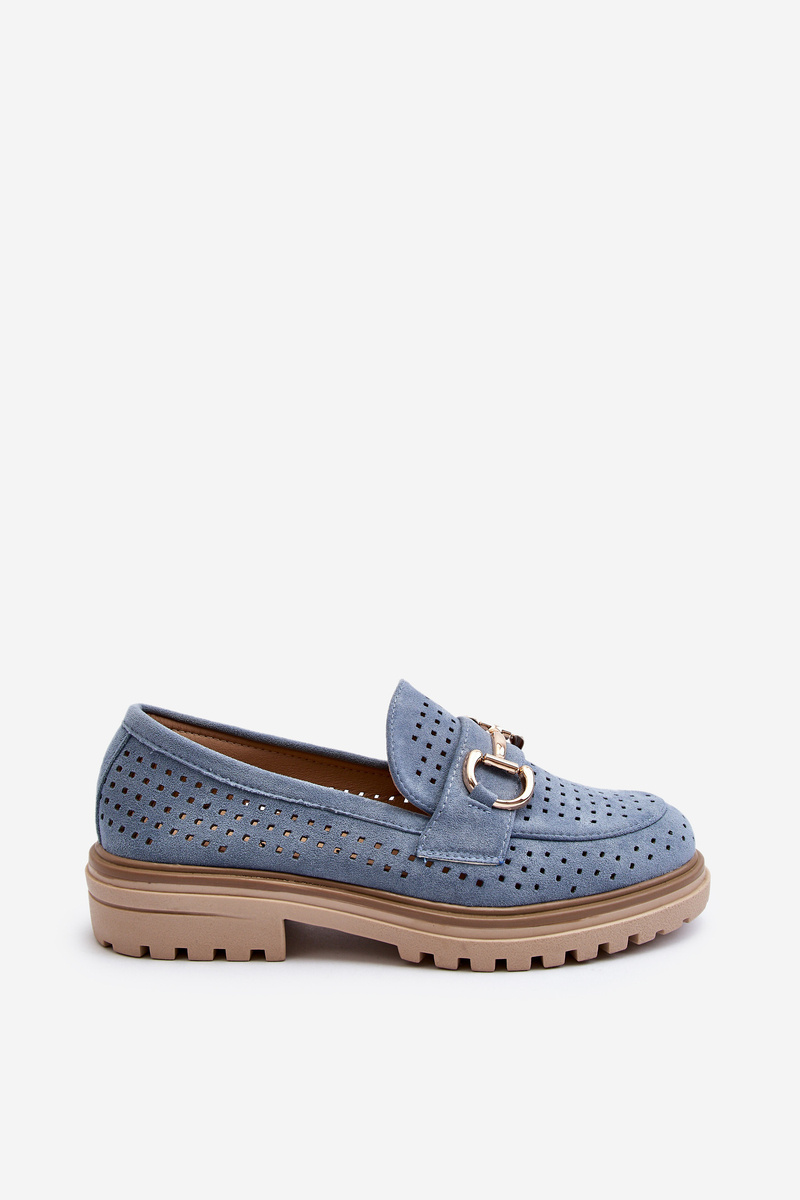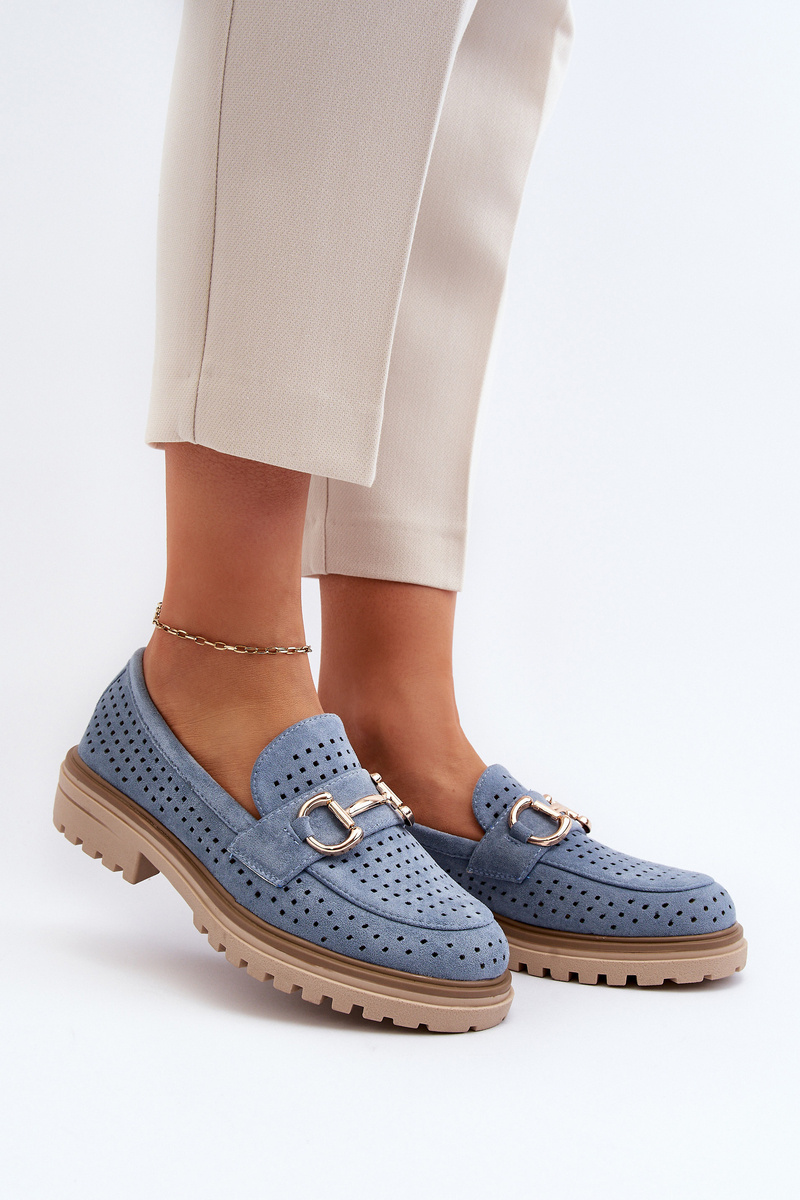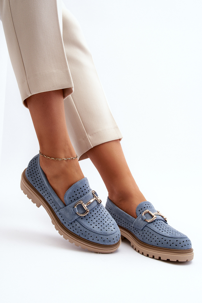 Women's Blue Cutout Moccasins With Embellishment Talesse