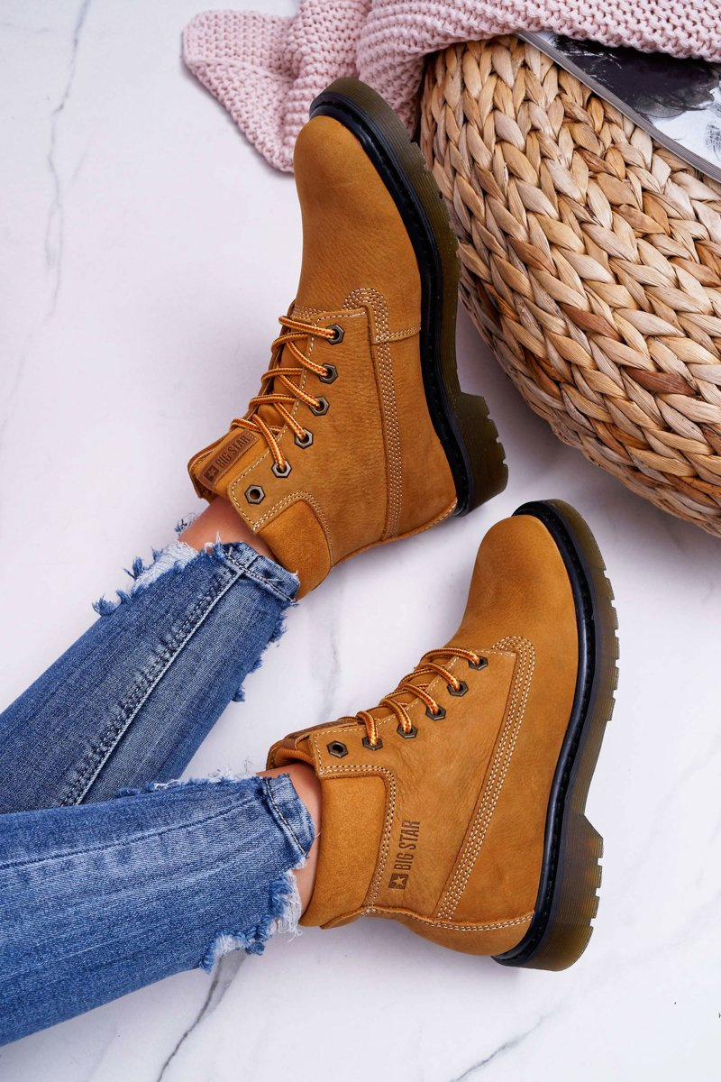 Trappers have become an indispensable part of autumn and winter styling. One of this season's trends are these great shoes by Big Star! The upper is made of natural leather, which, combined with fashionable stitching, makes them look insane. Stable flat heel and solid lacing. These wonderful trappers absolutely must be in your collection. When choosing the size, please suggest the size chart.