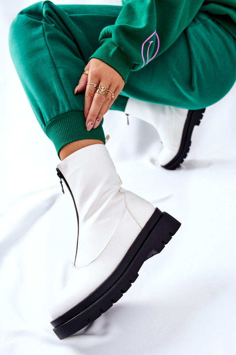 Booties made of eco-leather. They have a zip on the front of the upper, which makes them comfortable to put on. The fitted upper will emphasise your legs. The pleasant-to-touch shoe blanket will come in handy on cold autumn days.When choosing the size, please refer to the size chart.