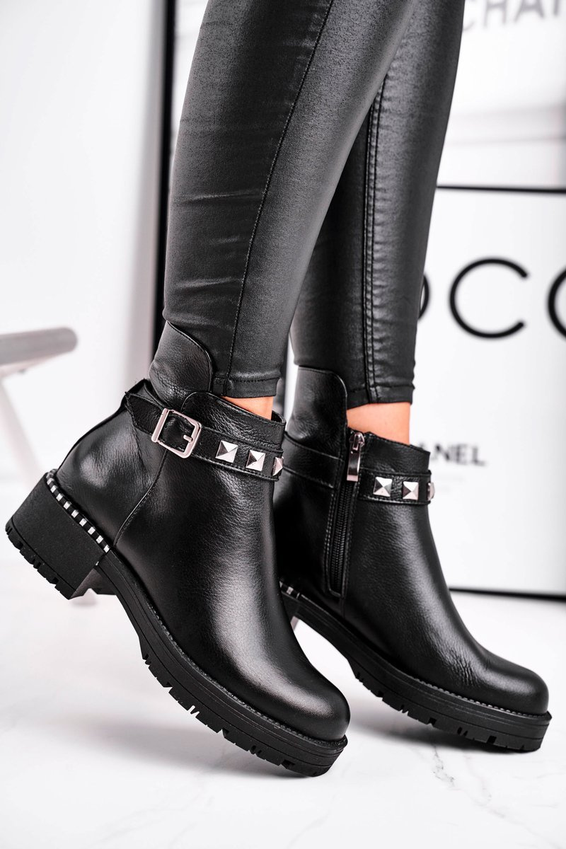 Give yourself a bit of luxury and choose our wonderful flat-heeled ankle boots. Laura Messi continues to surprise us. The boots are made of the best quality natural leather. The interior is made of felt insulation that will keep you warm on cold days. Comfortable donning thanks to the zipper fastening. A delicate ornament in the form of a belt with a buckle and rhinestones. When choosing a size, please use the size chart.