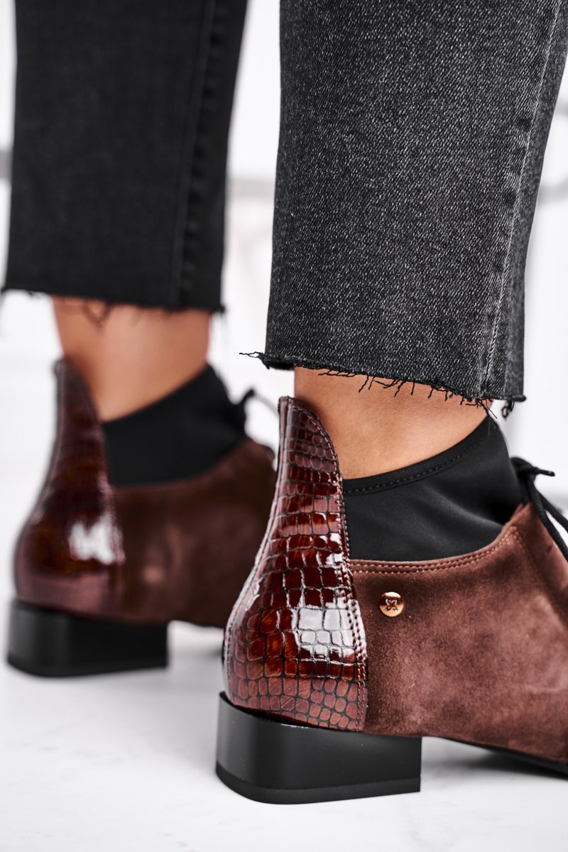 Extremely stylish shoes from Maciejka are now available! They certainly attract attention with their unusual design. The combination of several types of leather with different textures gives them a truly elegant and fashionable style. Delicate flat heel and lace up upper. With such shoes, you and your stylizations will surely be noticed. When choosing a size, please use the size chart.