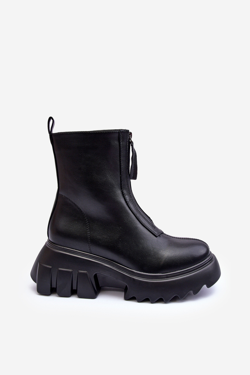 Women's Boots on a Chunky Platform with a Zipper Black Kusma