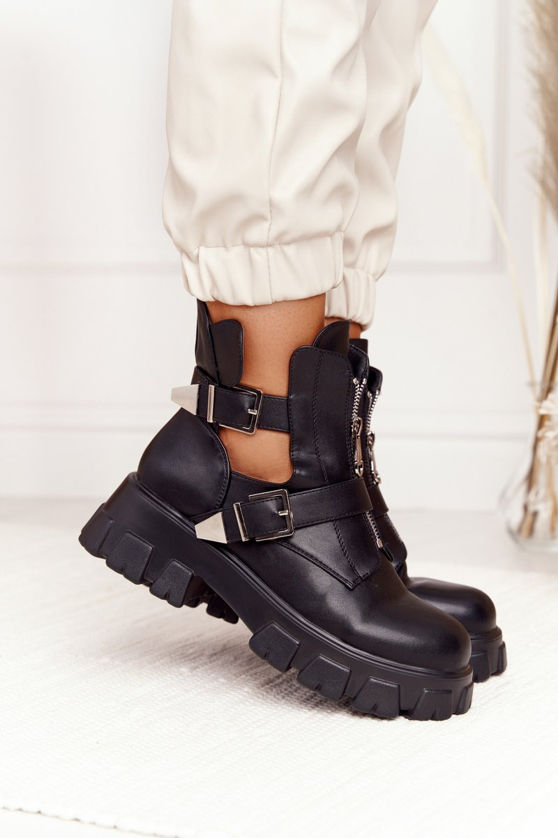 Unique boots with cutouts and buckles on a massive platform. Workers are made of ecological leather. The boots will fit perfectly into glam rock or grunge stylizations. When choosing a size, please use the size chart.