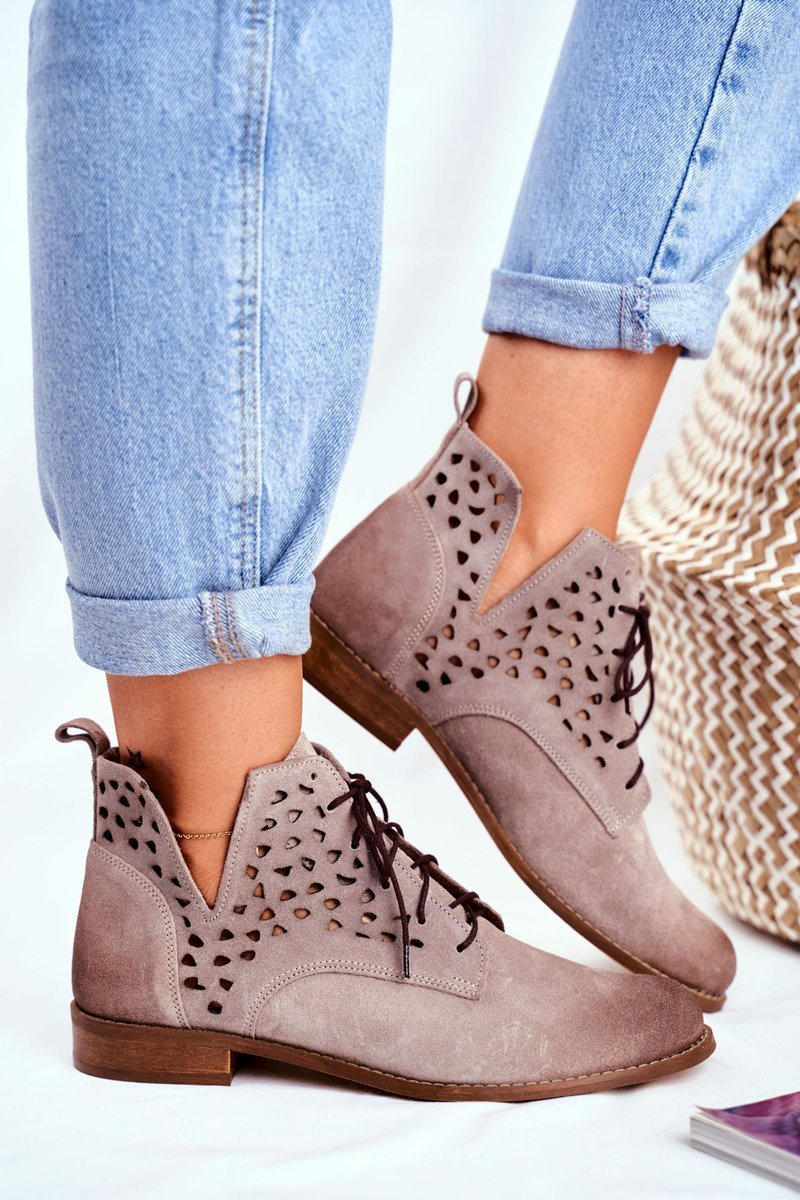 Shoes are not just shoes for cold days. They are also great in creating spring stylizations. Polish product, made entirely of suede leather. Soft, flat heel lifts your figure and accentuates stylization. Openwork style never goes out of style. Ideal for airy dresses and denim pants. When choosing a size, please suggest a size table.