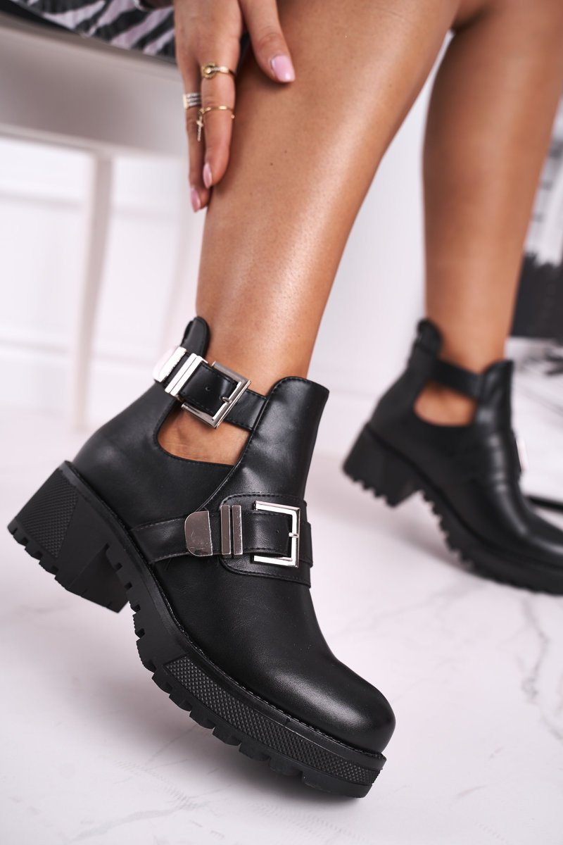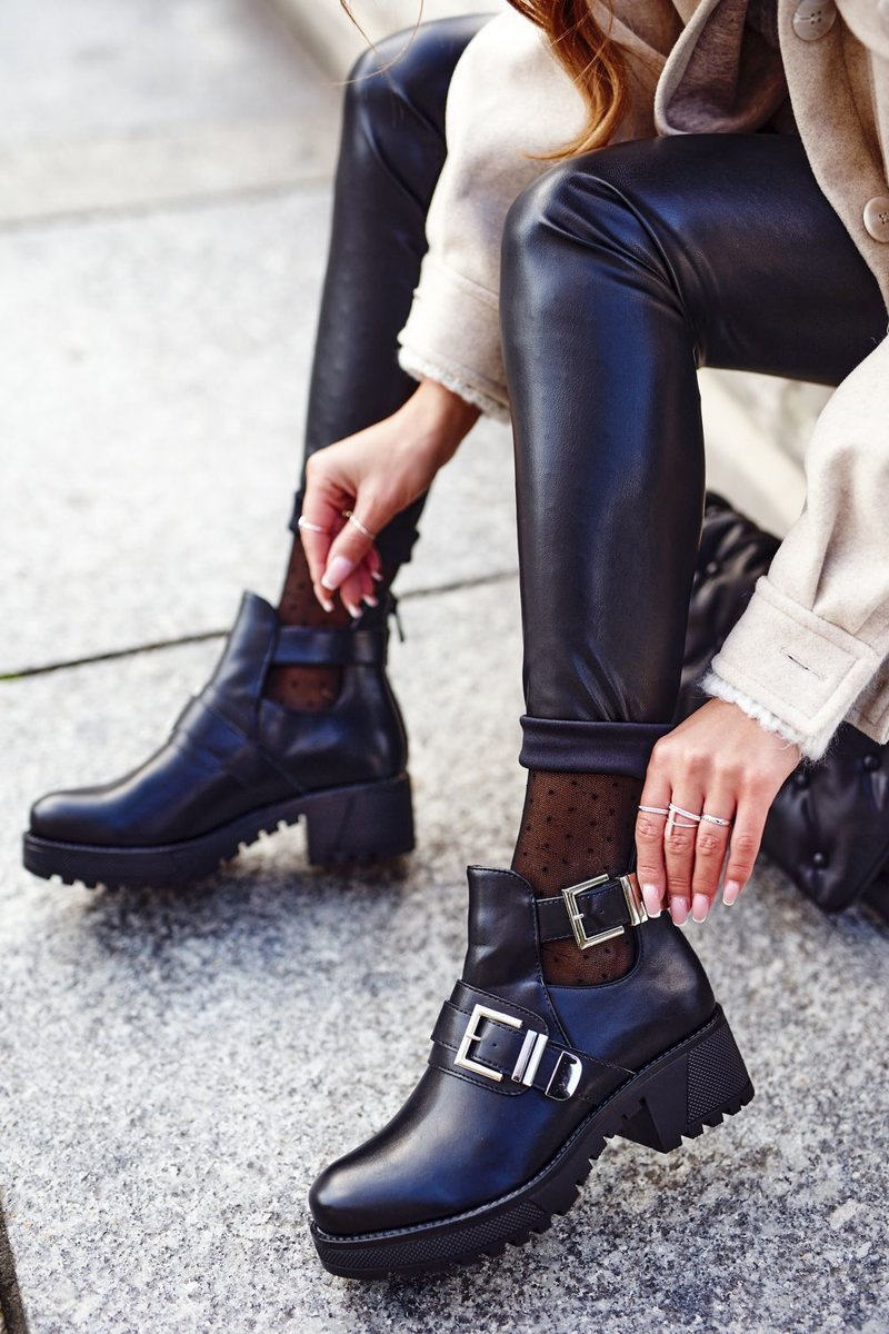 Exclusive women's boots! Made of ecological leather, decorated with buckles. Fastened with a zipper. They are placed on a delicate heel that will lift your figure. Get yourself a little extraordinary look!