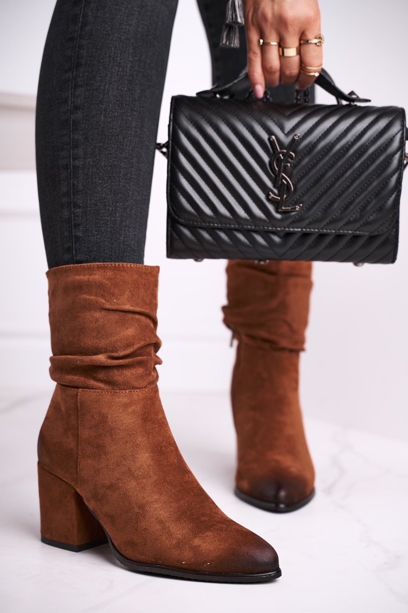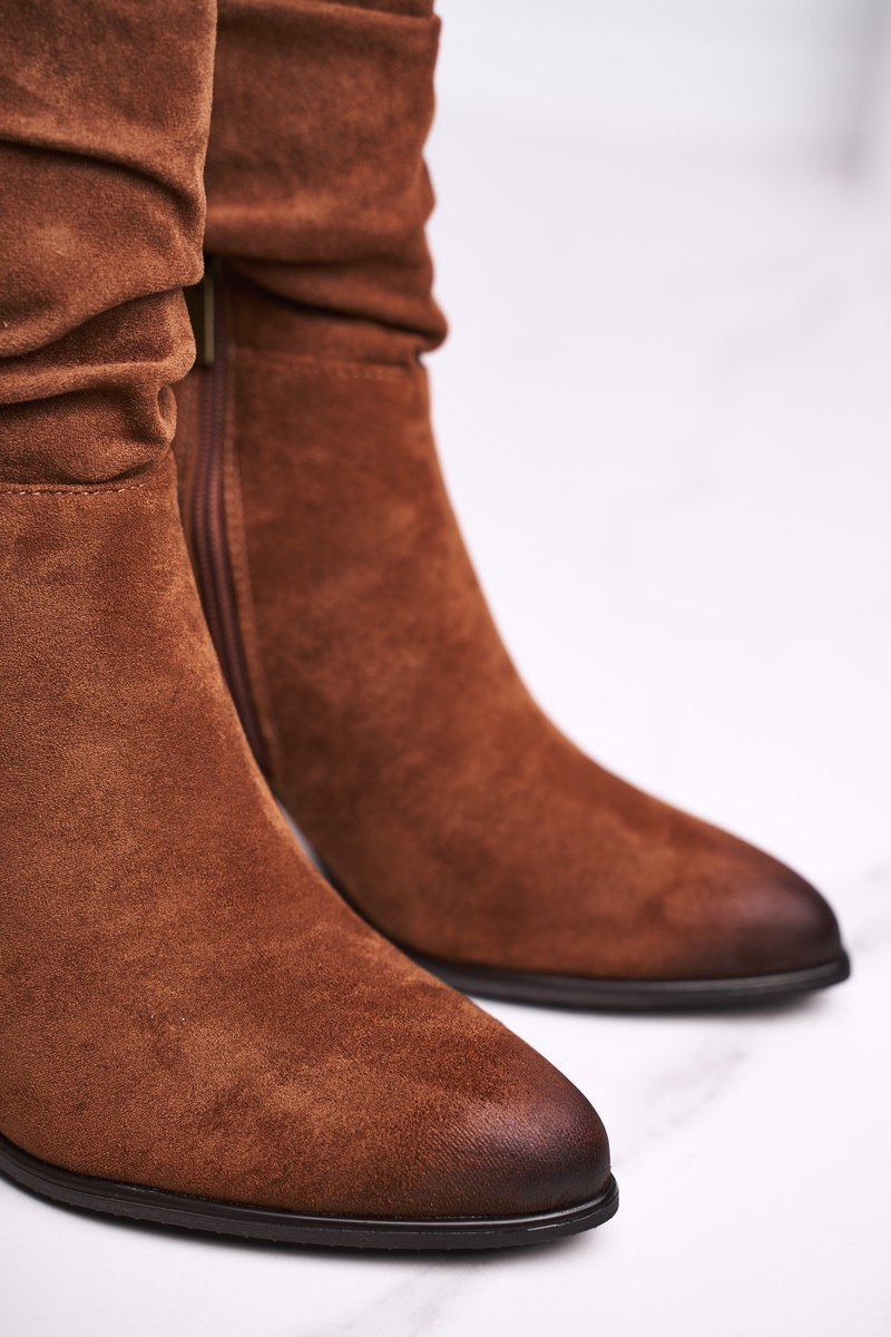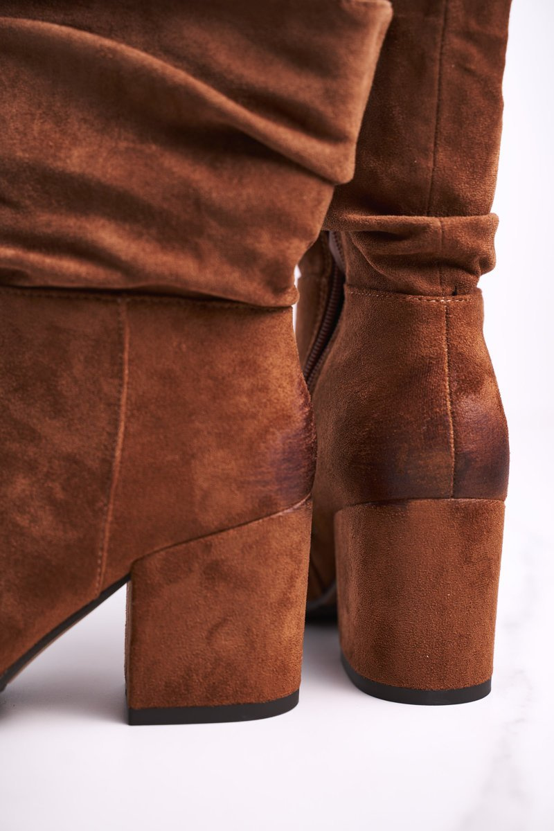 Women’s Boots On High Heel Eco-Suede Camel Up Side