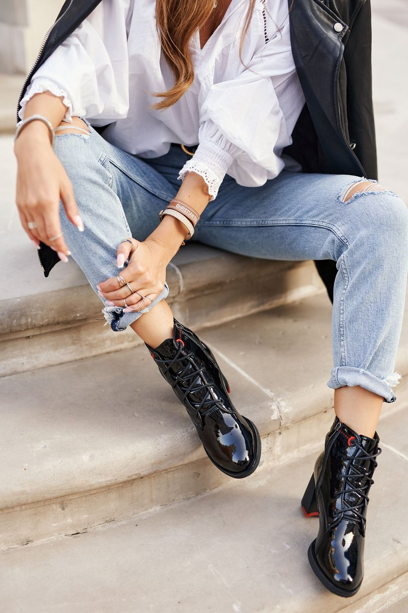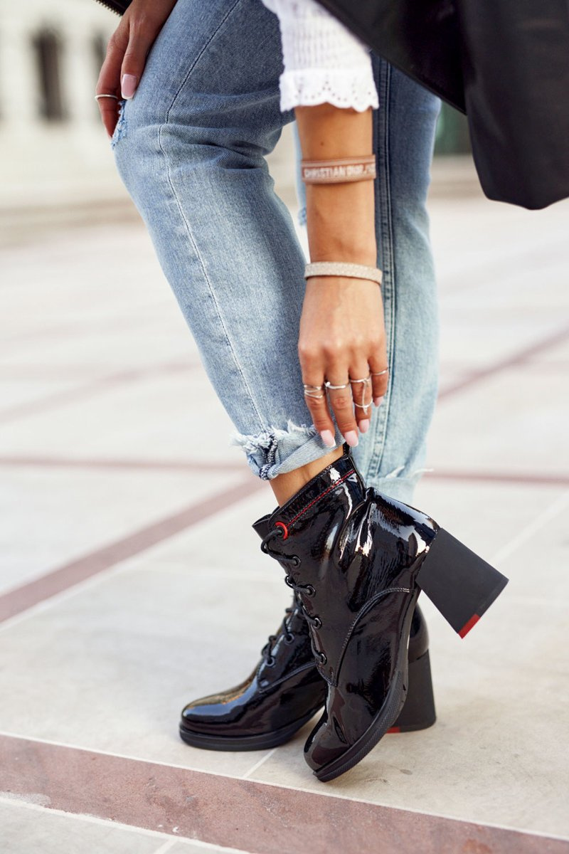 Have you been dreaming about another pair of shoes that will delight everyone around you? If so, look no further. The classic cut on the post will never go out of fashion, and combining it with varnished ecological leather is just a shot at 10! The boots have a zipper for easy donning and classic lacing for an even better fit. On cold days, you don't have to worry about what to wear, because the boots inside have a delicate insulation in the form of a shoe blanket. When choosing a size, please use the size chart.