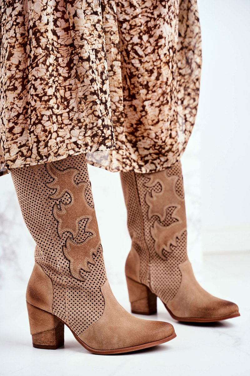 Women’s Boots On High Heel Leather Beige High Rosemary