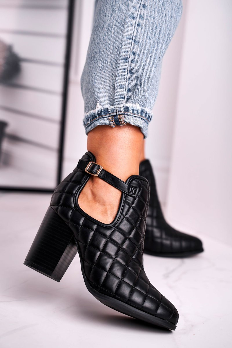 Boots are not only shoes for cold days. They are also great for creating styling on slightly warmer days. Design with cutouts above the ankle and belt fastening, these boots simply do not need to be advertised any more! Quilted ecological leather material is a total must have. Perfect for airy dresses and pants. When choosing a size, please use the size chart.