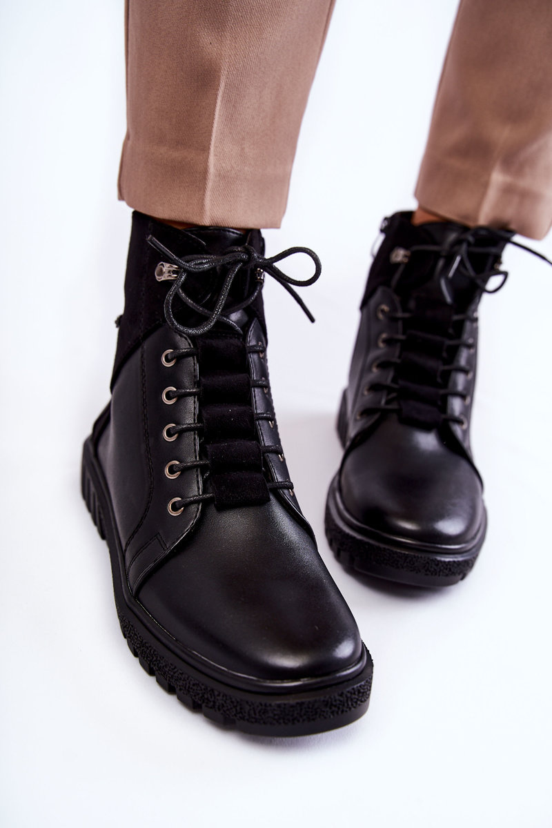 Classic women's boots from the Sergio Leone brand! They were made of eco leather. They have classic lacing and a zipper on the side of the upper that makes it easier to put on shoes. The sole with the tread is made of plastic. Additionally, the heel counter is stiffened. These boots will go great not only with trousers, but also with dresses or skirts. When choosing a size, please use the size chart.