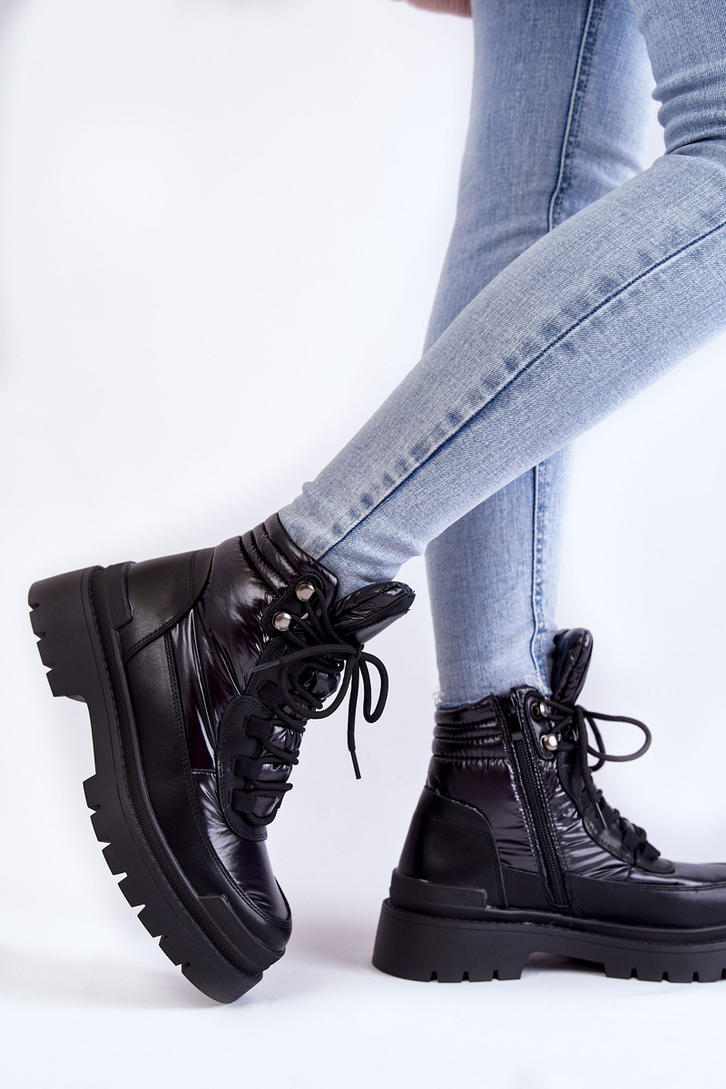 Women's boots are made of high-quality fabrics and eco-leather. This model has a zipper on the side of the upper and solid lacing. Trappers are insulated with thick fur. They are mounted on flat heels and a platform with grooves. A great model for colder days! You should have it in your closet! When choosing a size, please use the size chart.