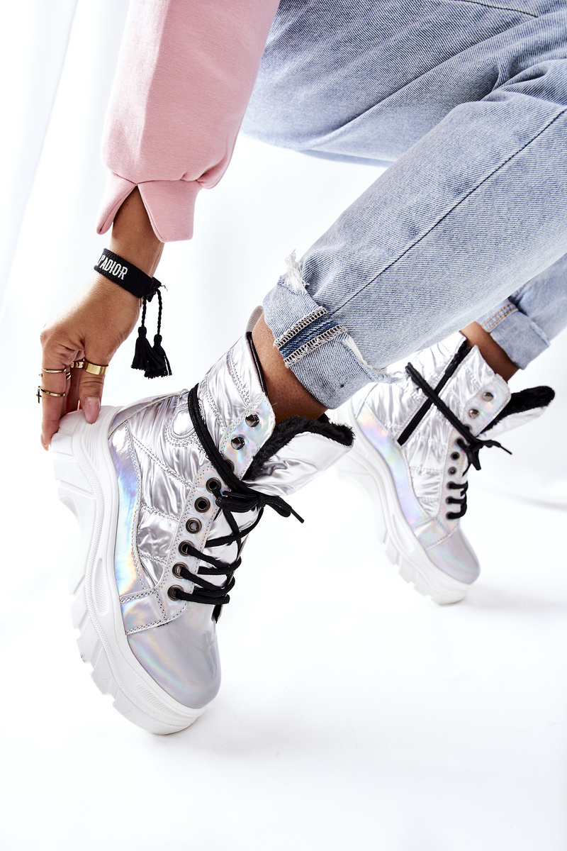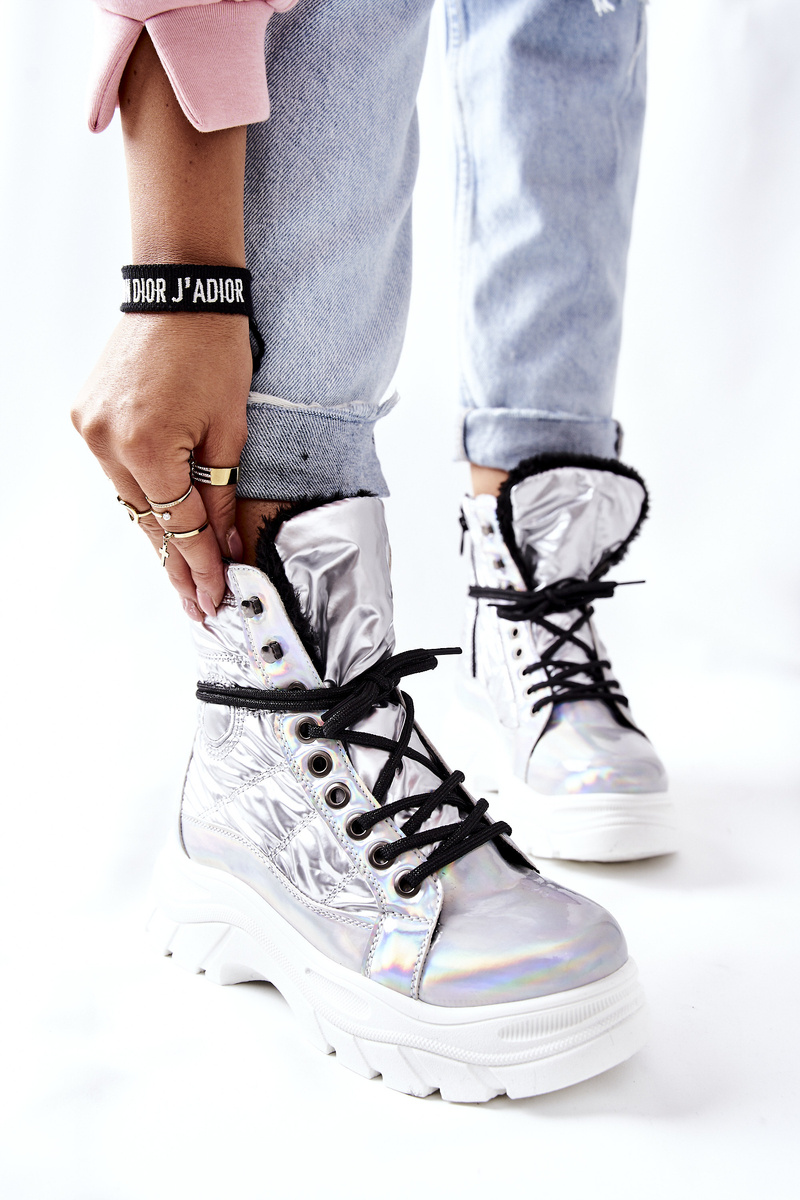 Women's insulated boots made of ecological leather. Lace-up and with a zip. Ideal for winter.