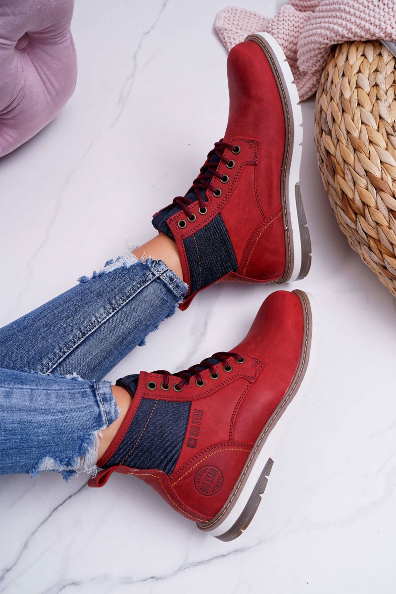Women's Boots Trappers Big Star Leather Maroon EE274006