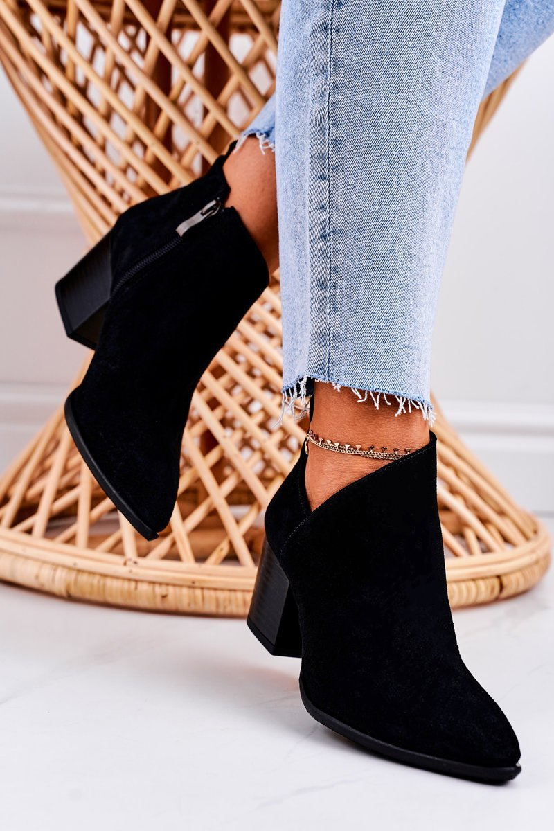 Women's Boots With A Cut On Block Heel Suede Black Lawrence