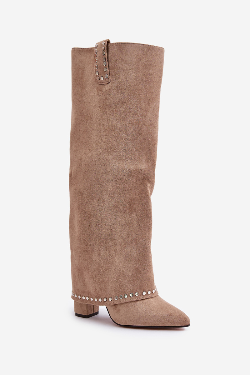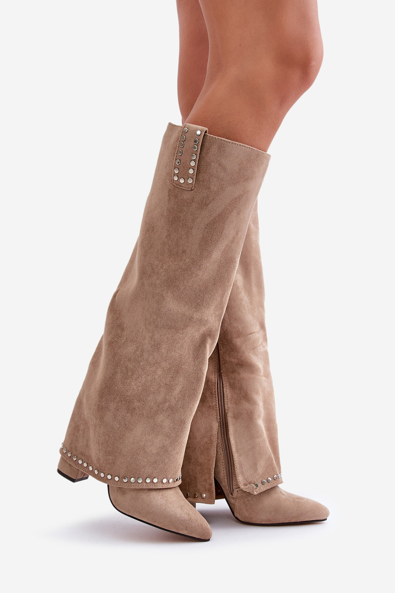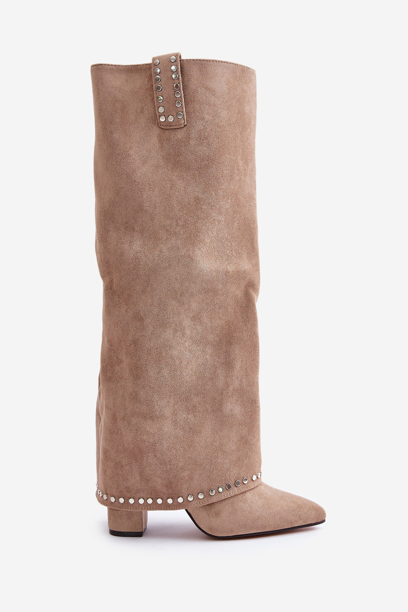 Women's Boots With Rolled Shaft On Heel Beige Kaithena