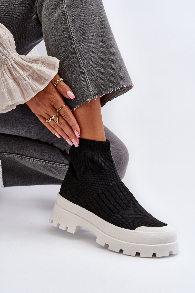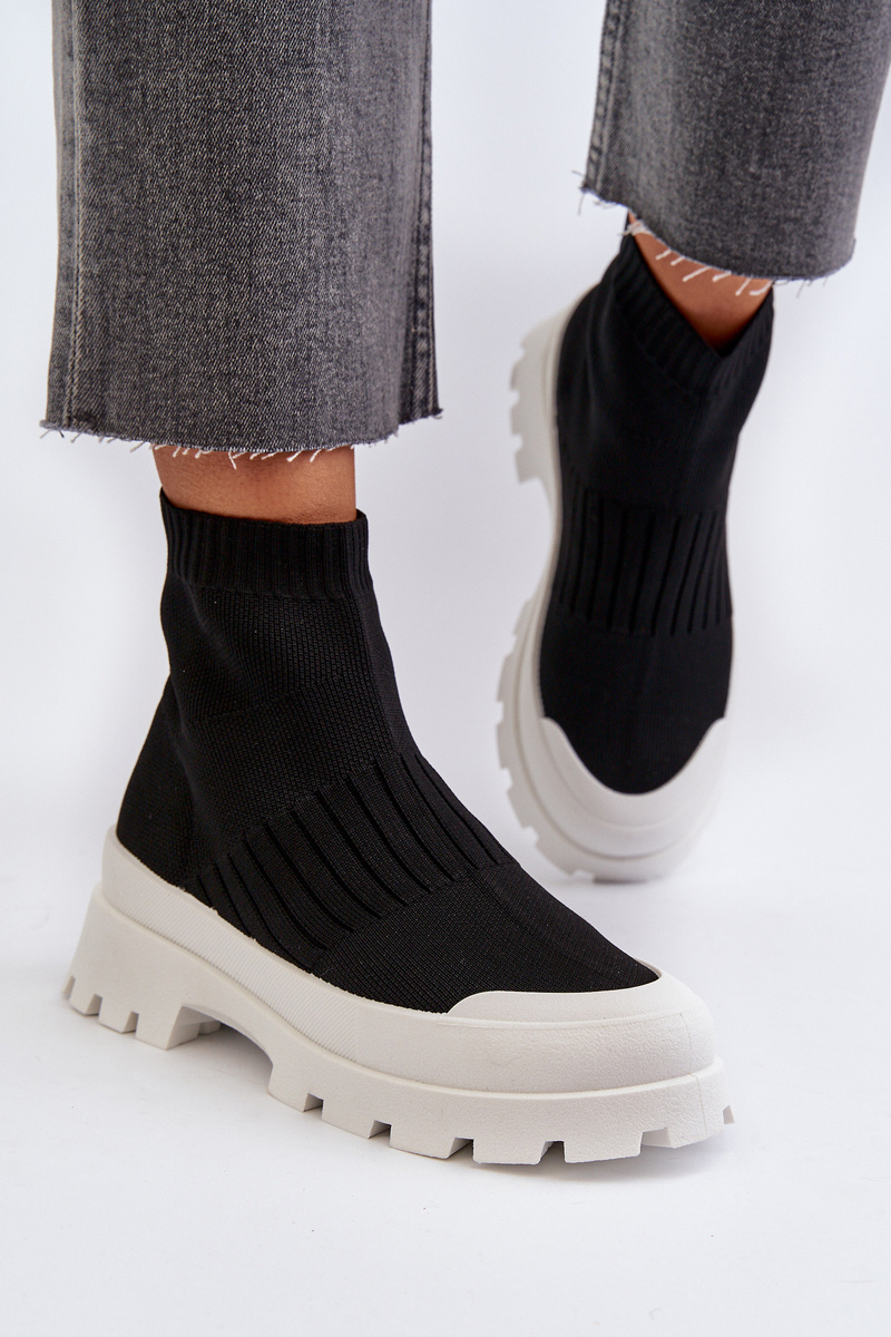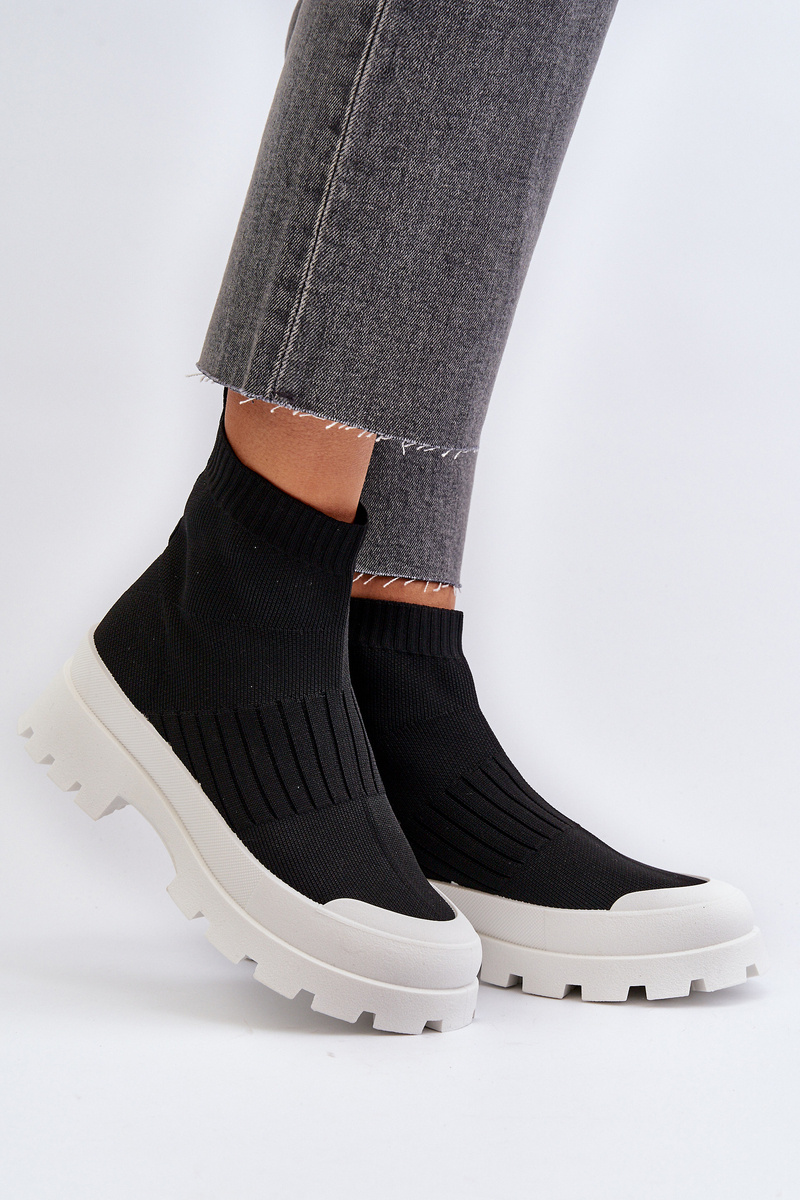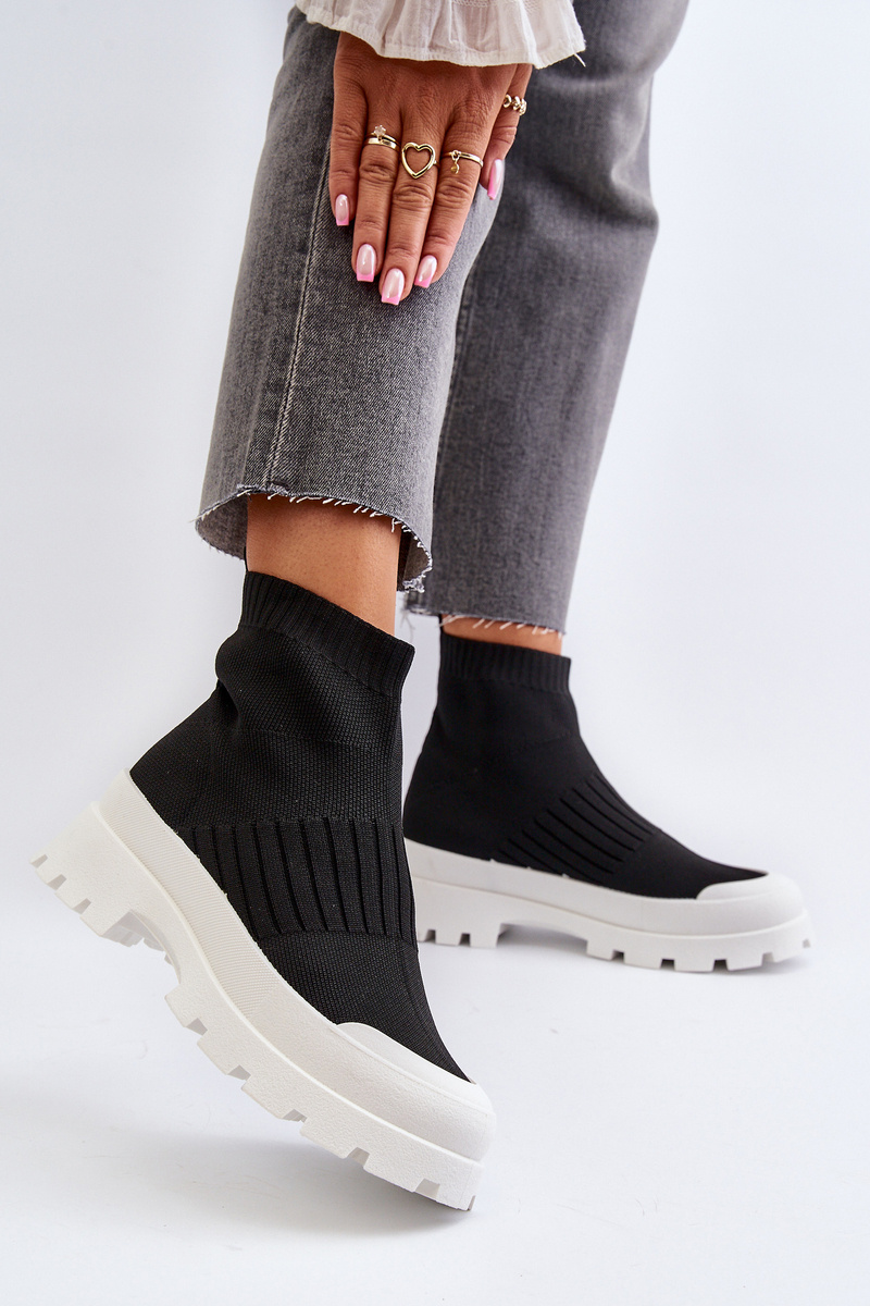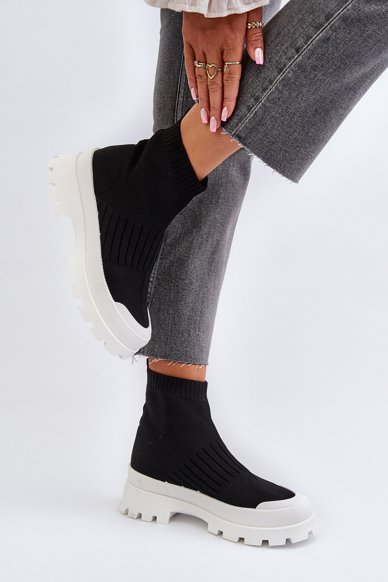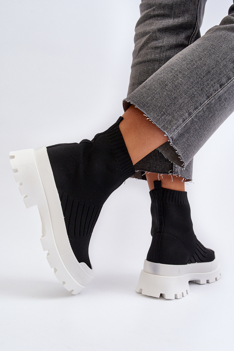 Women's boots with sock-like uppers, which make them not only fashionable, but also very comfortable to wear. Slip-on style and flat heels make them extremely comfortable to wear, perfect for long walks or everyday errands. Additionally, they have a platform that gives them a modern look and extra stability. A great choice for those who value comfort and a fashionable look at the same time! When choosing a size, please refer to the size chart.