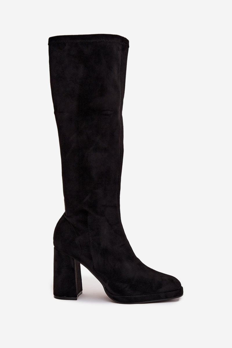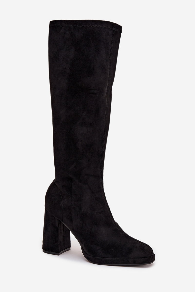 Women's boots made from soft eco-suede. A stable block heel provides comfort, and the slightly rounded toes add a subtle touch to the overall look. The model is fastened with a zipper. The close-fitting shaft, decorated with stitching, beautifully emphasizes the leg line, creating a slim and feminine silhouette. Perfect for both everyday and elegant styles with dresses and skirts. Please refer to the size chart when choosing your size. When choosing a size, please refer to the size chart.