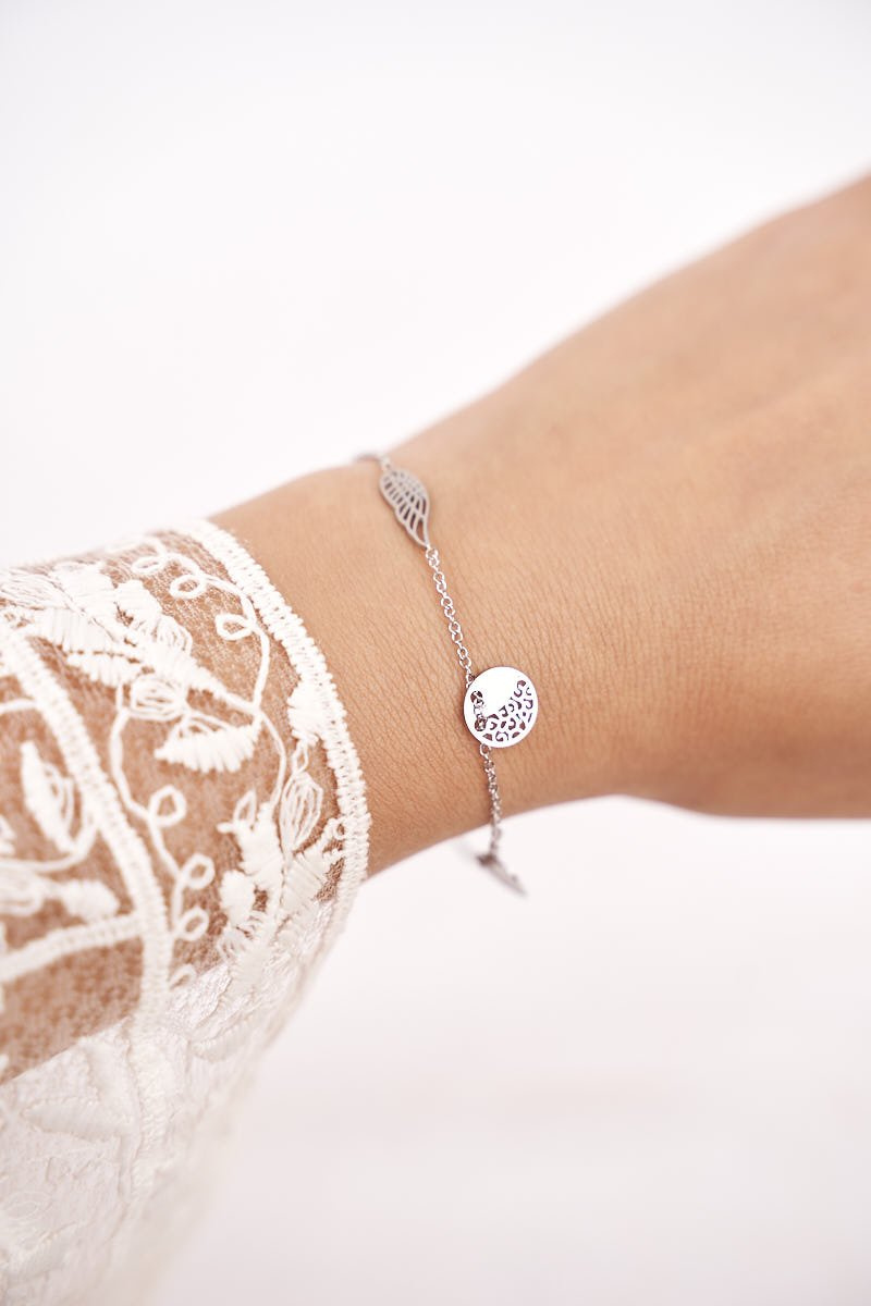 We women love trinkets. Every styling needs accessories, and even the smallest ones are very important. We are talking here about beautiful jewelry that will emphasize the best. Great bracelet on a chain with a pendants. The bracelet is made of stainless steel. A fashionable pattern that each of us will pay attention to. Adjustable bracelet length. Check out our entire jewelry collection and choose your favorite accessory.